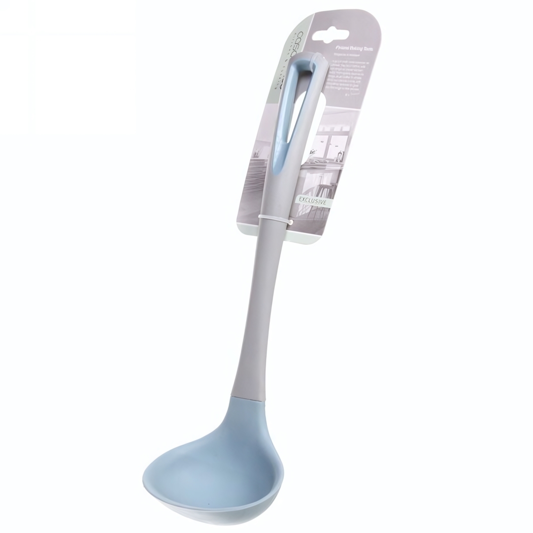 Широкая чаша с плавными изгибами аккуратно захватывает жидкости, а рифлёная зона захвата на ручке предотвращает выскальзывание. Подходит для сервировки супов, соусов и тушеных блюд — станет незаменимым инструментом как для домашнего использования, так и для профессиональных кухонь.