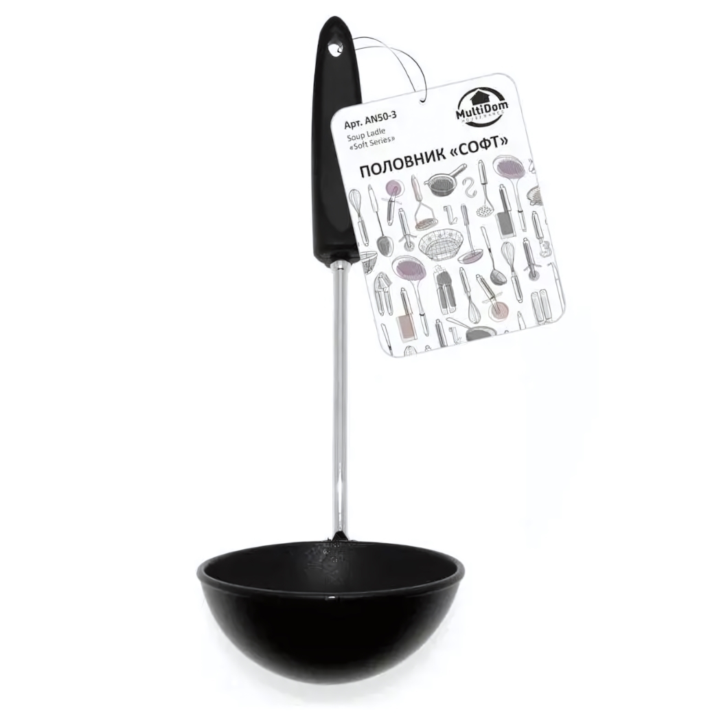 Ложка «Soft Series» сочетает эргономичный дизайн и практичность для ежедневного использования. Удобная металлическая ручка и прочное пластиковое полотно делают процесс наливания супов и соусов максимально удобным.