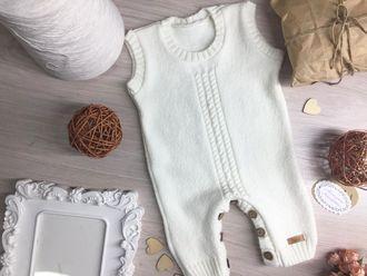 Детский вязаный полукомбинезон 56-62, шерсть/акрил, молочный, деревянные пуговицы