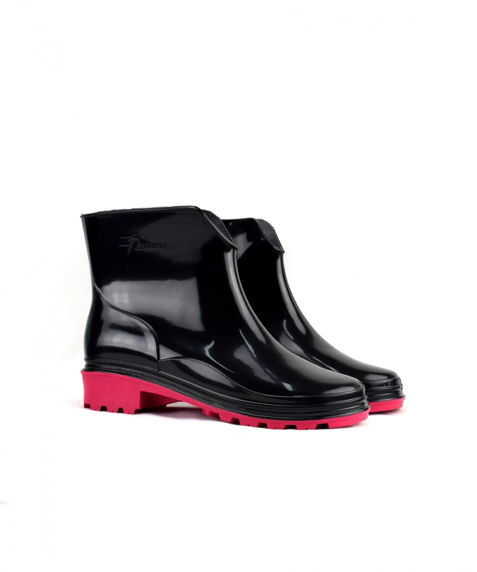 Представляем вам стильные полусапожки, которые обеспечат комфорт и защиту вашим ногам в любое время года. Выполненные из качественного ПВХ, они обладают водонепроницаемыми свойствами, что делает их идеальным выбором для осеннего и весеннего сезона. Благодаря чёрному цвету с розовой подошвой, эти сапожки идеально впишутся в любой наряд, добавляя нотку яркости и оригинальности.