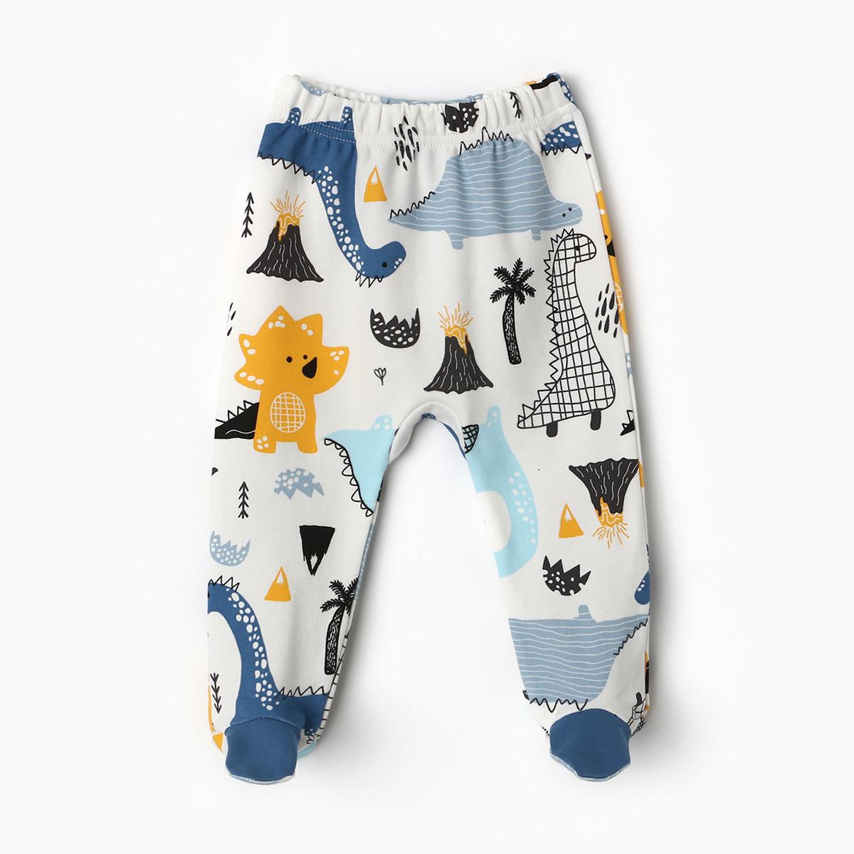 Ползунки детские "Bonito" р.74, хлопок 100%, интерлок, белый/дино