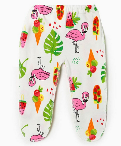 Ползунки из 100% хлопка созданы для максимального комфорта в течение всего дня. Яркий принт с фламинго и фруктами подарит хорошее настроение, а эластичная ткань обеспечит свободу движений.