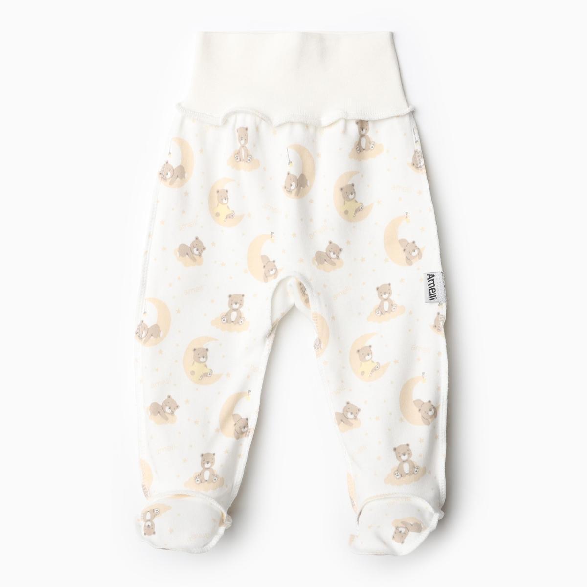 Ползунки детские 'Амелли' из интерлока, размер 62, молочный с мишками и луной