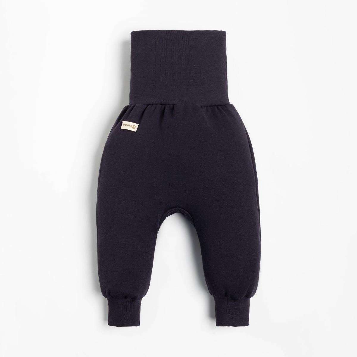 Ползунки-штанишки детские, темно-синие, высокая талия, мягкий хлопок, р. 62-68