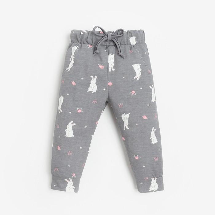 Ползунки-штанишки детские "Princess", серые с кроликами, хлопок, рост 80-86 см