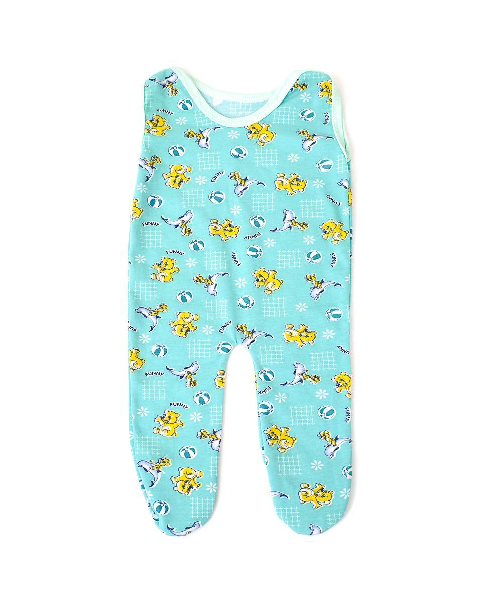 Ползунки детские высокие Amoteks, кулирка, размер 68, голубые с милыми зверятами