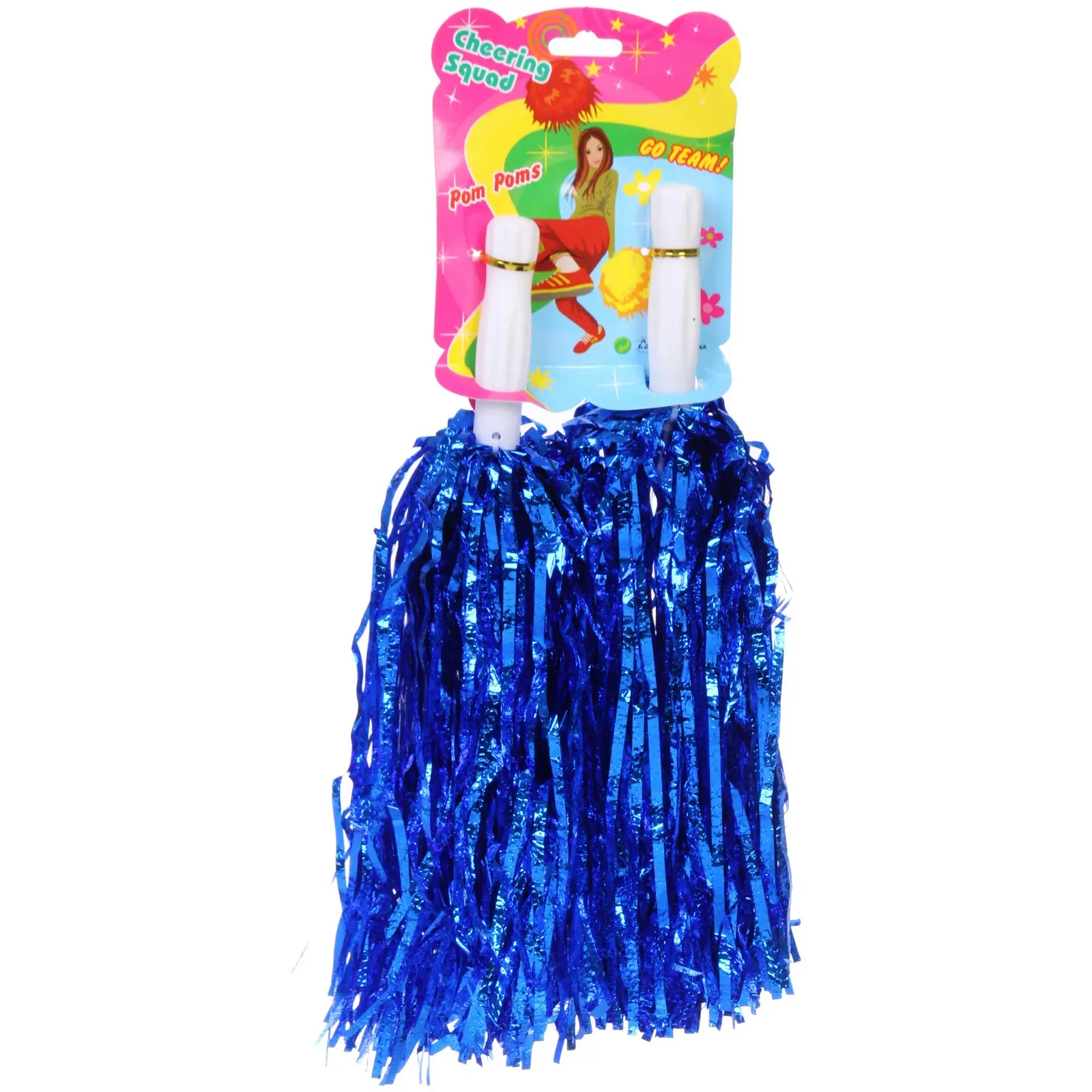 Почему стоит выбрать именно наши помпоны? Во-первых, их ярко-синий цвет с металлическим блеском привлечет внимание и создаст эффектный визуальный акцент. Во-вторых, они легкие и простые в использовании, что делает их идеальными для детей и взрослых. Вы можете легко взять их с собой на стадион или использовать для украшения вашего мероприятия.