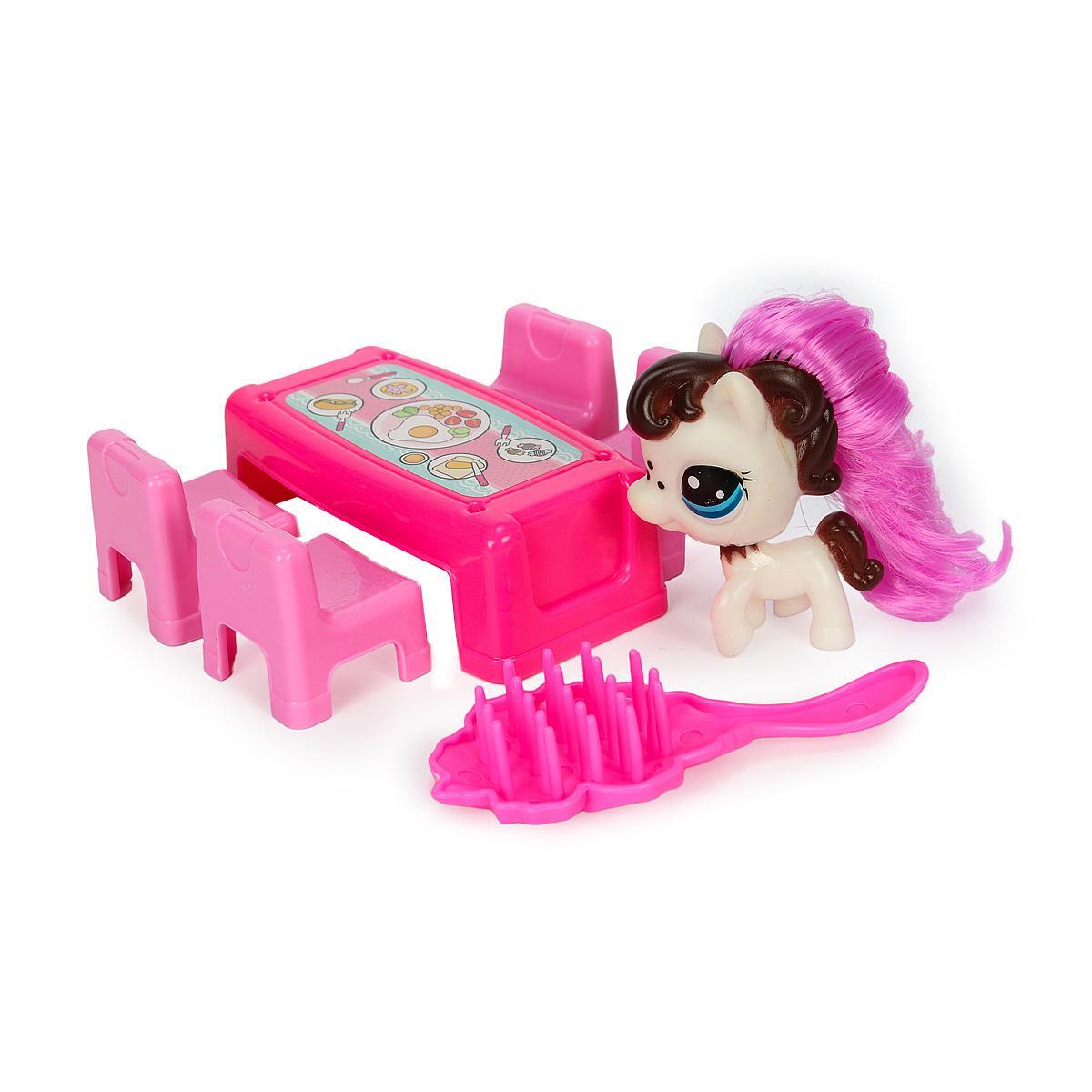 Игровой набор для девочек с домиком и аксессуарами, 2 фигурки пони, пластик, размер 17х11х6см