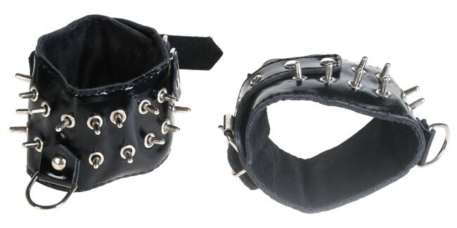 Манжеты для щиколоток лакированные черные, кожа/металл, универсальный размер, надежная фиксация