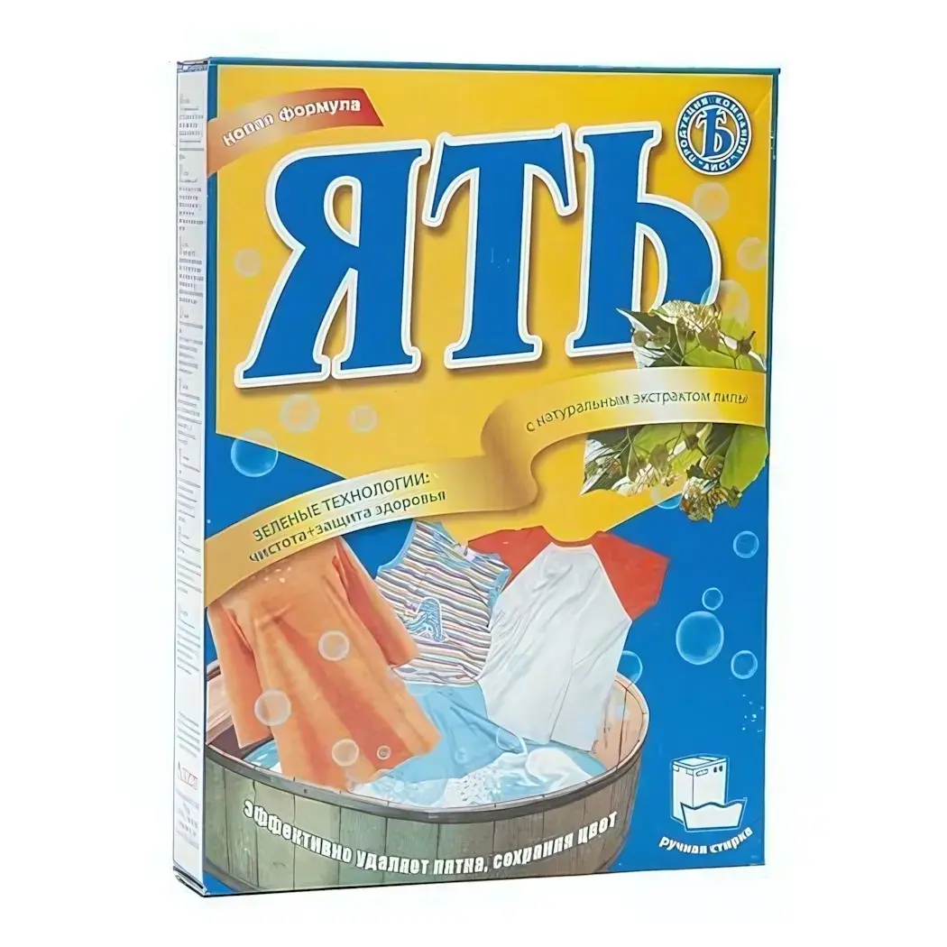 Порошок стиральный ЯТЬ — это ваш надежный помощник в борьбе с пятнами и грязью. Он подходит для всех видов тканей, кроме шерсти и шелка, и обеспечивает бережное отношение к вашим вещам. Благодаря новой формуле с натуральным экстрактом петрушки, порошок не только эффективно удаляет загрязнения, но и сохраняет первоначальный цвет одежды, что делает его идеальным выбором для заботливых хозяек.