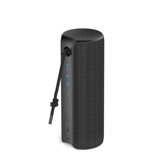 Размеры колонки составляют 310 x 100 x 70 мм, а вес — 500 г, что делает её компактной и удобной для переноски. Корпус выполнен из прочного пластика с текстурированными вставками, что не только придаёт стильный вид, но и защищает устройство от повреждений. Кнопки управления расположены на корпусе и имеют подсветку, что облегчает использование в темноте.