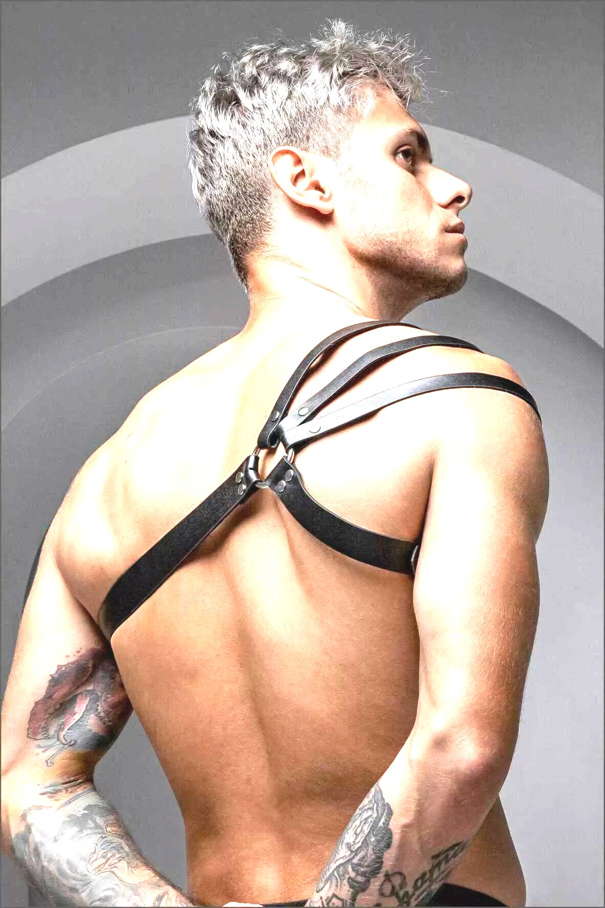 Портупея подходит для тематических мероприятий, фотосессий, сценических выступлений и создания смелых образов в интимной обстановке. Ее можно сочетать с рубашками, майками или носить на обнаженное тело, делая акцент на рельефе и линии плеч. Аксессуар помогает выразить индивидуальность и добавить образу выразительности без лишних деталей.