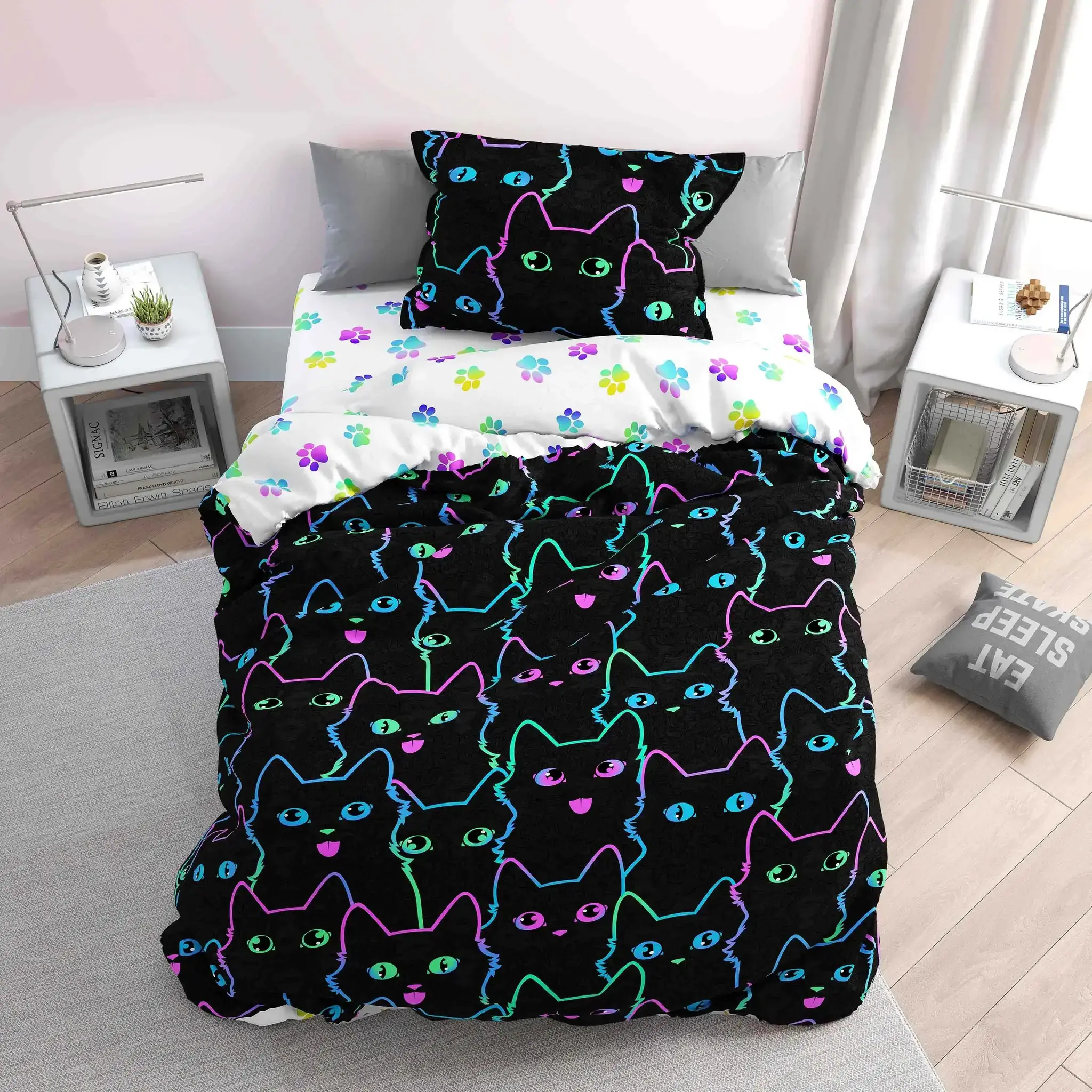 Постельное белье подходит для односпальной кровати и включает в себя одну наволочку размером 70х70 см. Оно легко стирается и быстро сохнет, что делает его идеальным выбором для повседневного использования. Благодаря универсальному дизайну, оно подойдет как для детей, так и для взрослых, добавляя игривости и яркости в любое пространство.