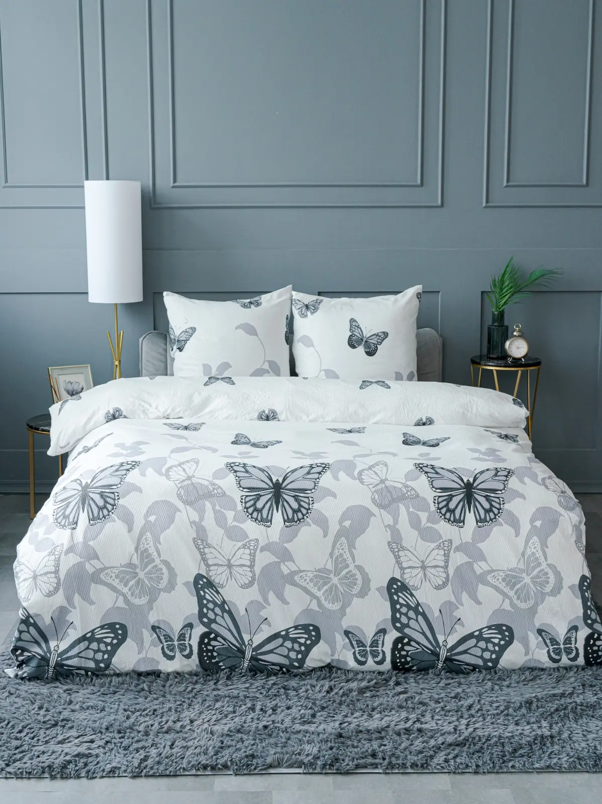 Постельное белье "Жанет Энея" создает атмосферу уюта и комфорта благодаря элегантному дизайну с изящными силуэтами бабочек.