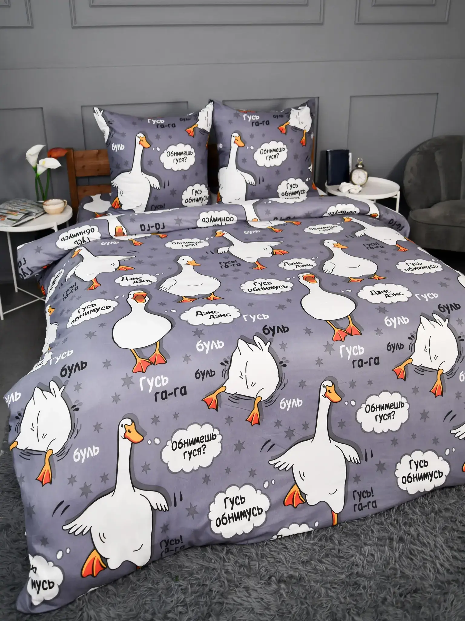 Превратите обычные вечера в особенные моменты с постельным бельем 'Гусь серый'. Милые мультяшные гуси на сером фоне создают игривую атмосферу, а мягкий полисатин обеспечивает нежное прикосновение к коже.