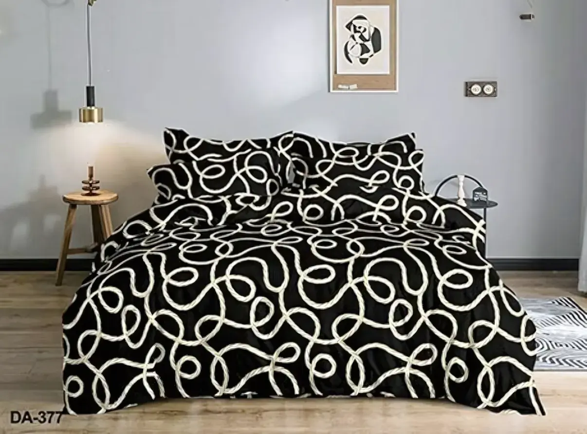 Комплект постельного белья 1,5-спальный, полисатин, черный с узором «Канат», модель DA-377