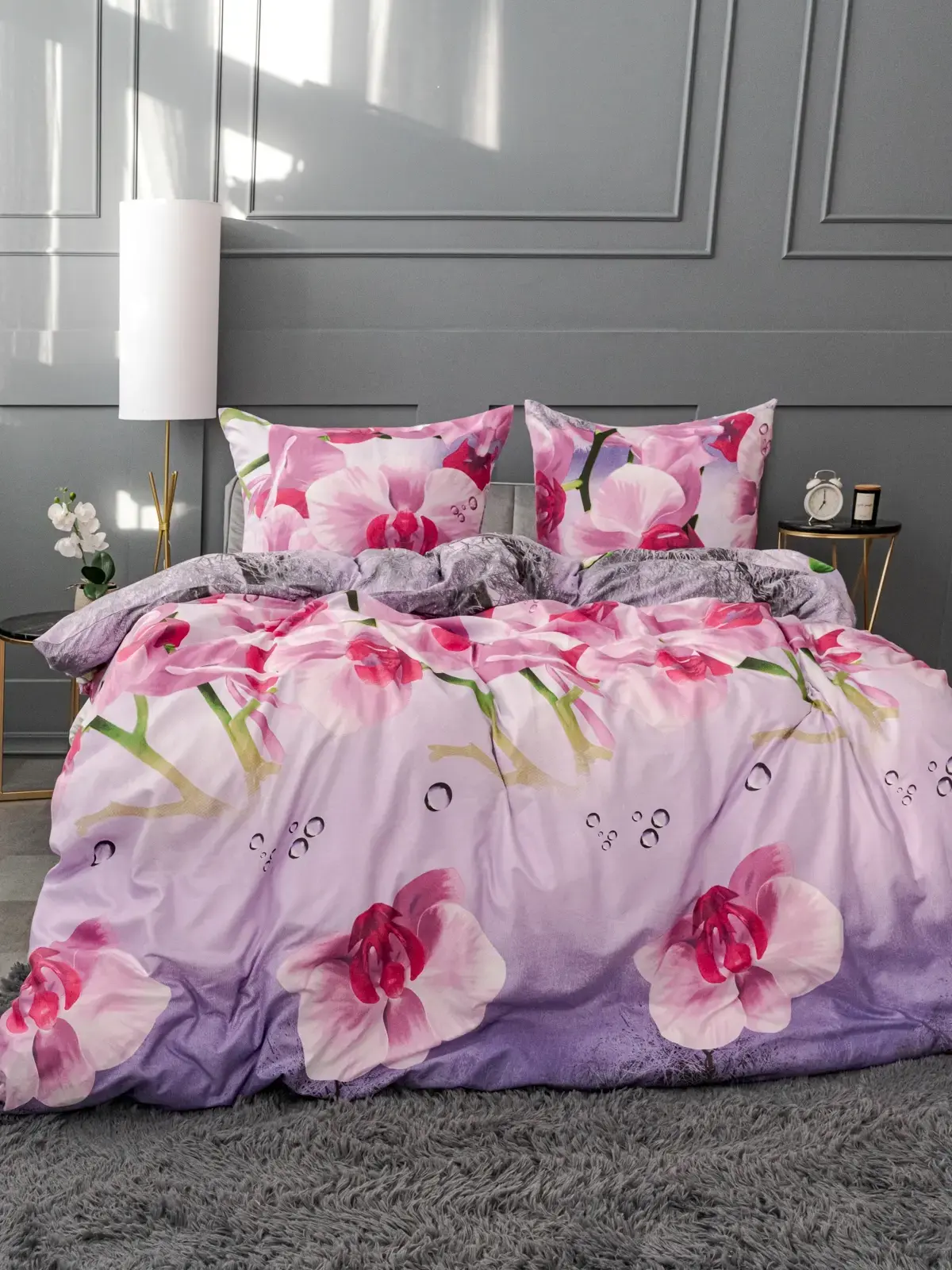 Погрузитесь в атмосферу уюта с комплектом постельного белья из дышащего полисатина. Роскошный цветочный принт с орхидеями и акварельными переходами создаст элегантный акцент в вашей спальне.
