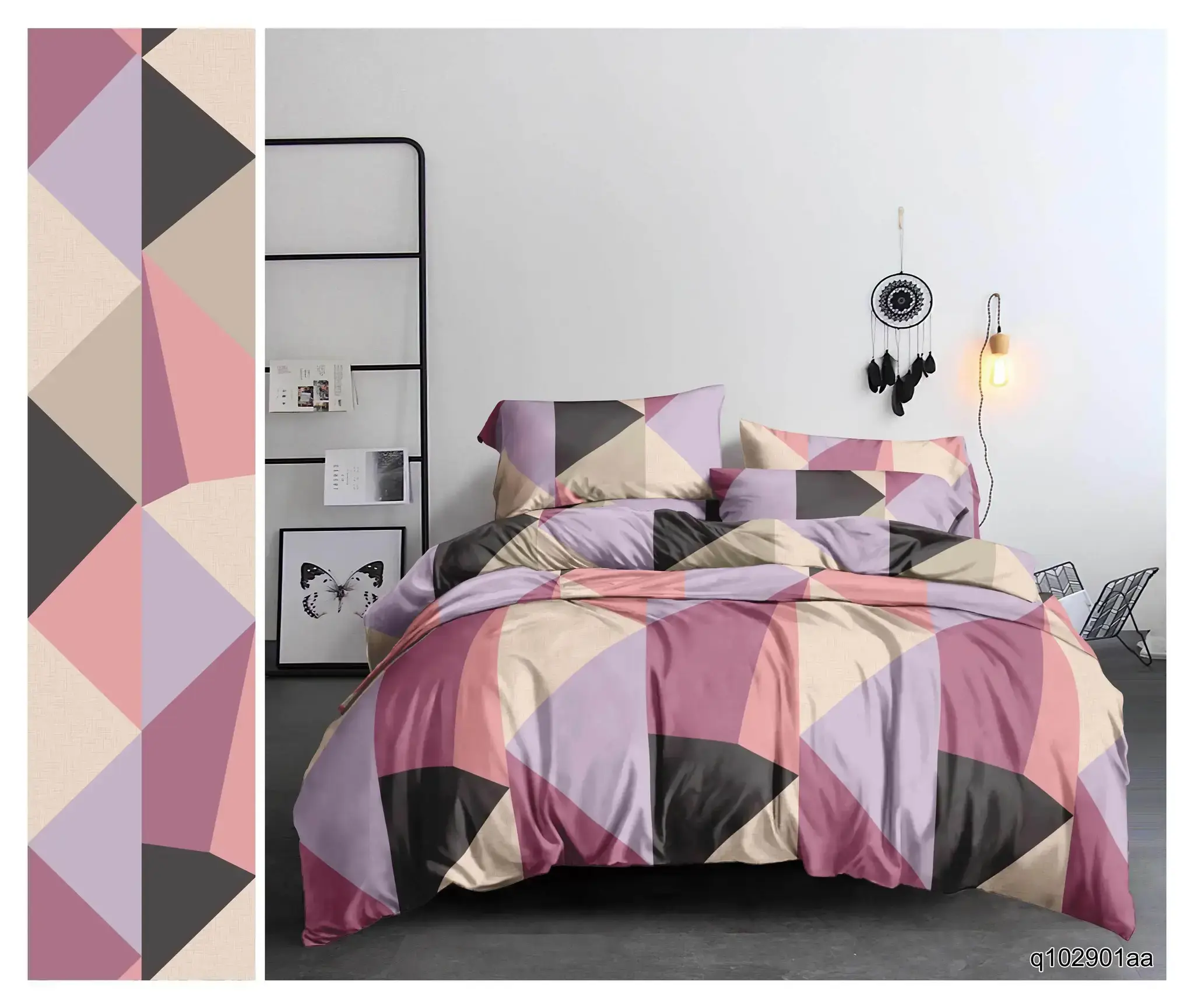 Комплект постельного белья из полисатина сочетает мягкость, износостойкость и современный дизайн. Геометрический принт с треугольниками в нежных розовых, фиолетовых и бежевых тонах добавит уюта и эстетики вашему интерьеру.