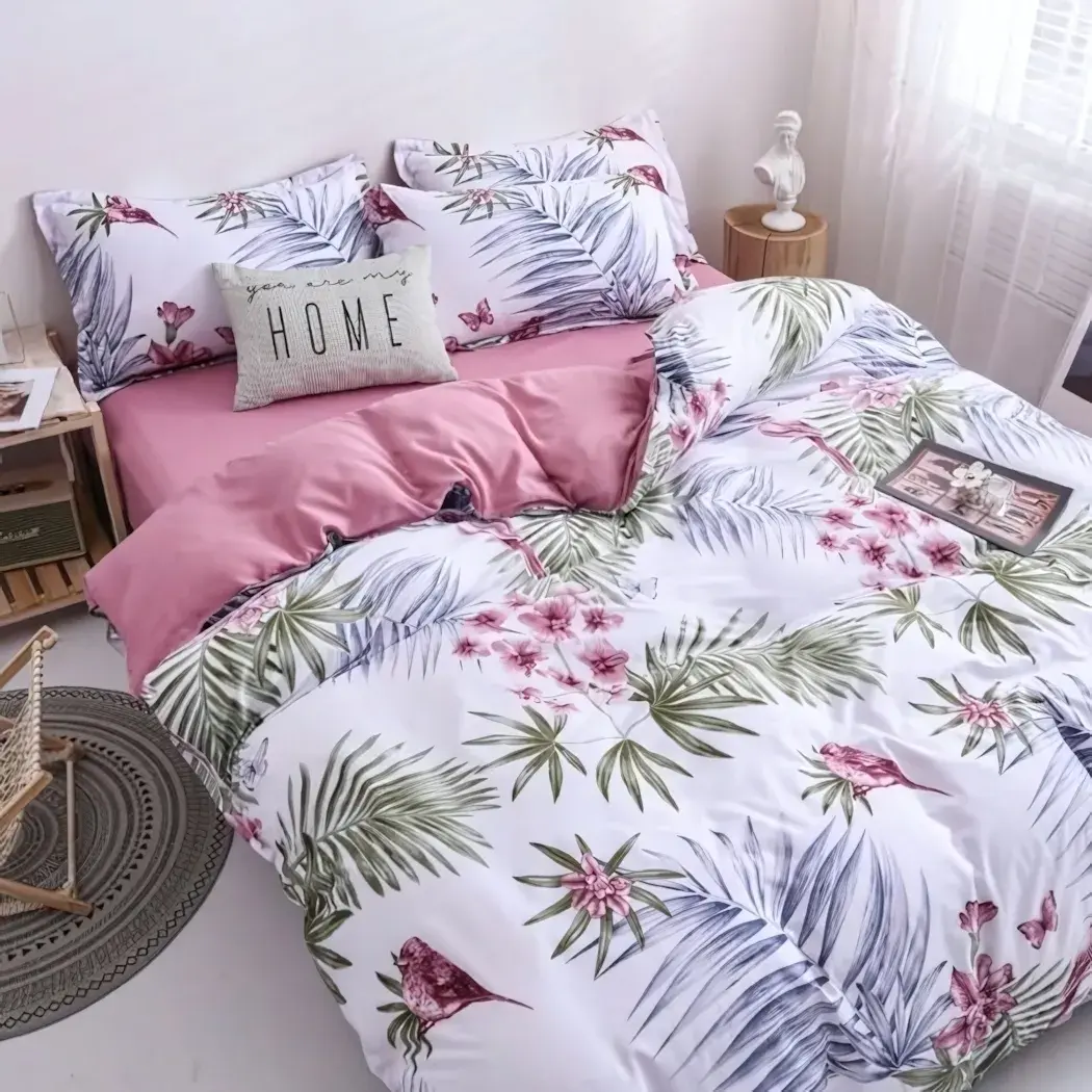 Этот комплект постельного белья включает пододеяльник, простыню и наволочки, что делает его идеальным выбором для двуспальной кровати. Он подходит для использования как в повседневной жизни, так и для создания особой атмосферы в спальне для гостей. Легкость в уходе и долговечность материала позволяют наслаждаться красотой и комфортом на протяжении долгого времени.