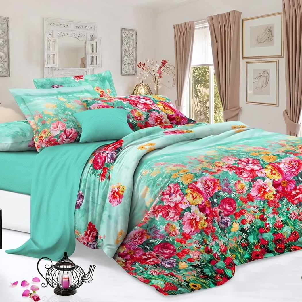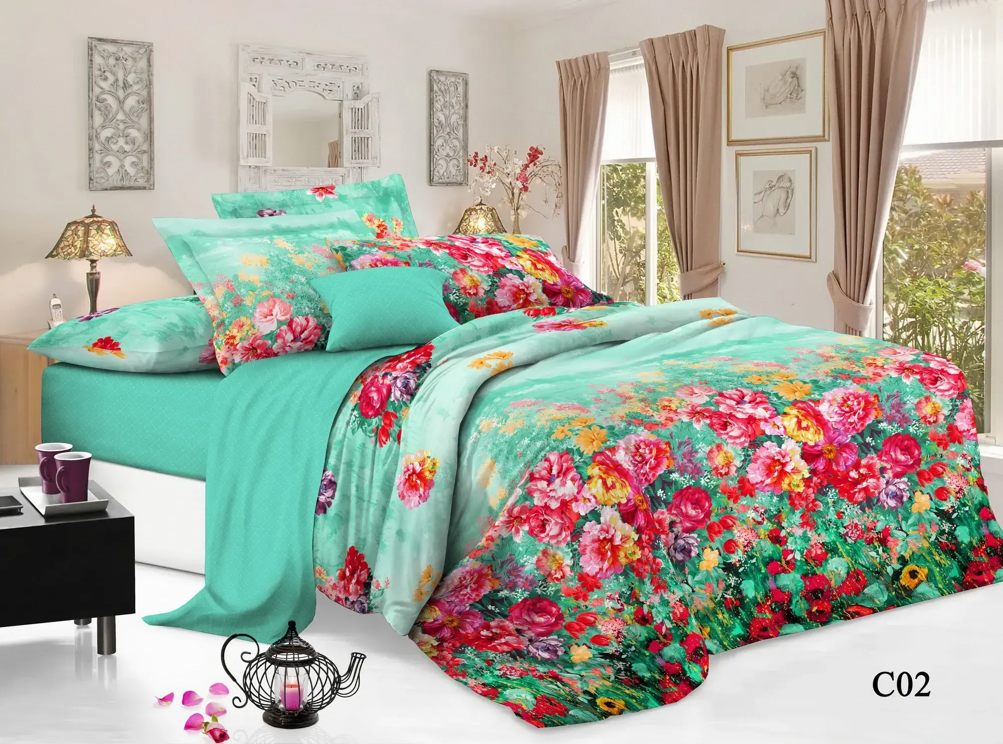 Создайте атмосферу уюта и комфорта в вашей спальне с постельным бельем 1,5 поплин Орхидея C02. Яркие цветочные мотивы в бирюзовом цвете с розовыми, красными и желтыми цветами добавят жизнерадостности и свежести в ваш интерьер. Это белье не только красиво, но и практично, обеспечивая вам комфортный сон и уют.