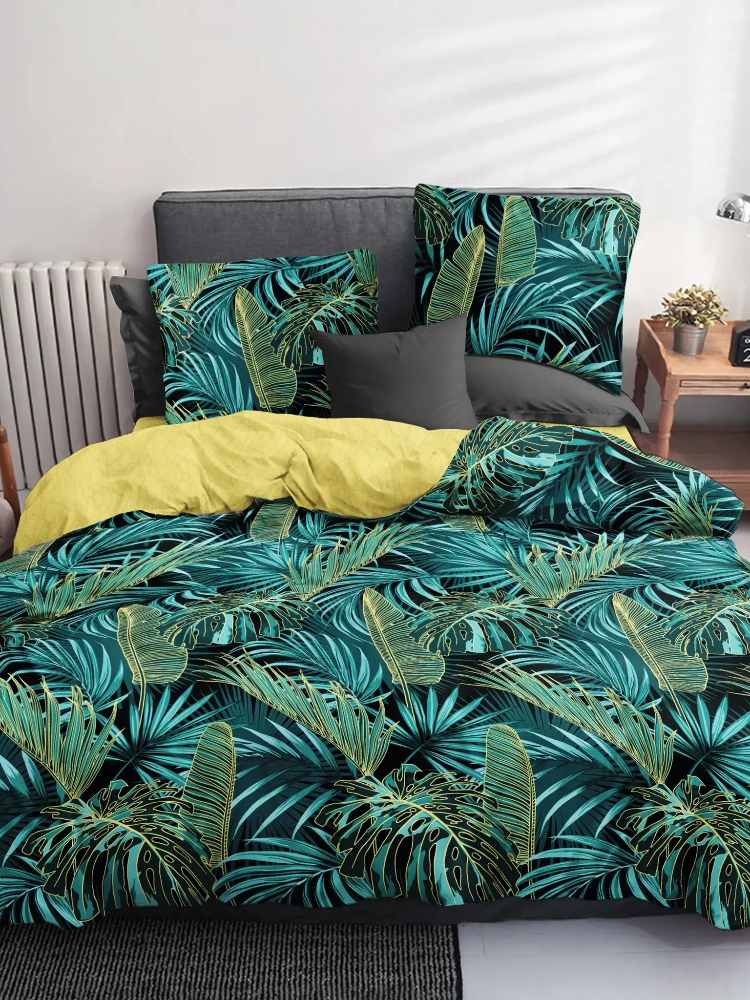 Тщательно продуманный дизайн с темно-зелеными пальмовыми листьями на фоне добавит изысканности вашей спальне. Белье создает ощущение прохлады летом и согревает зимой.