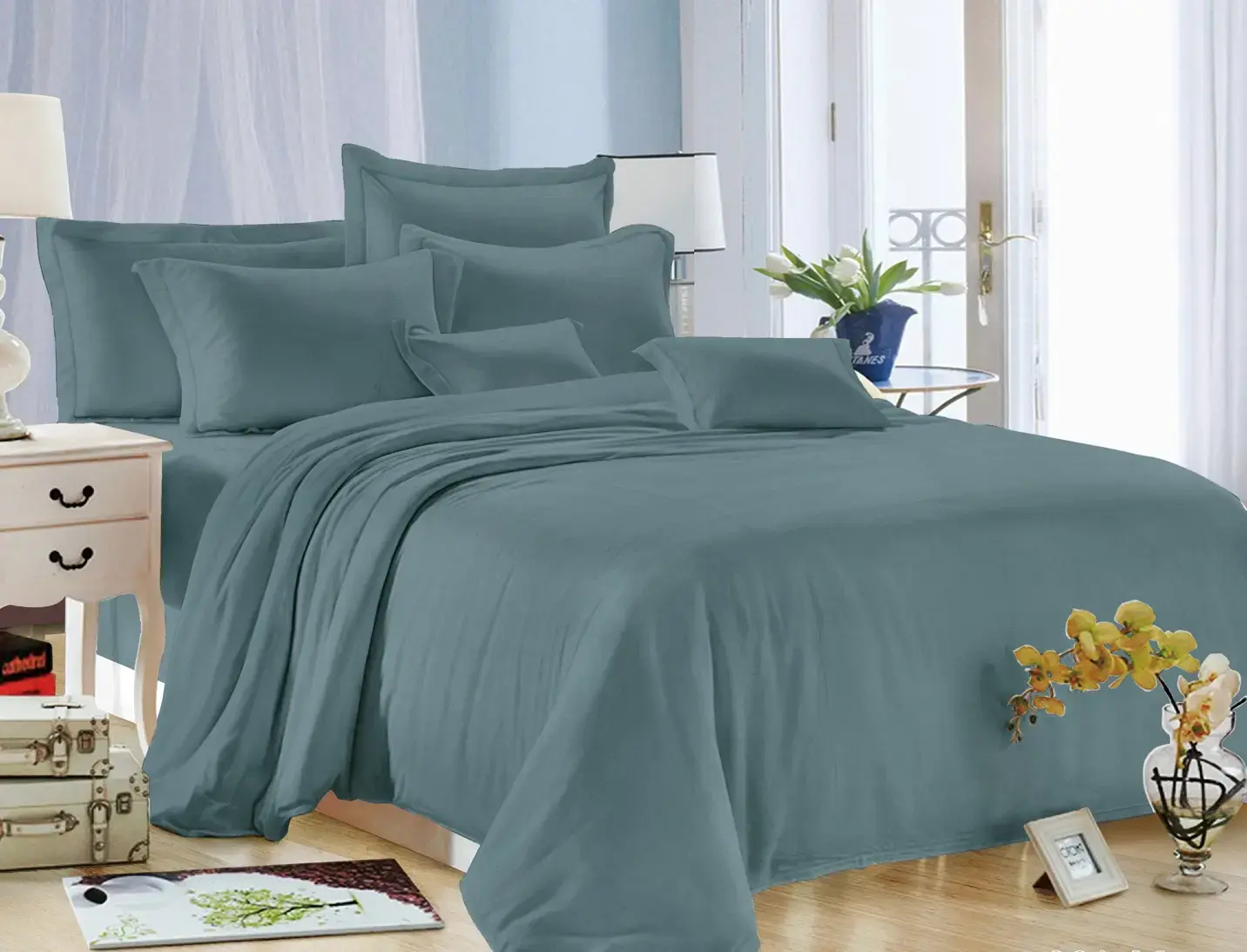 Погрузитесь в атмосферу уюта с постельным бельем 'Luxury Изумруд'. Его изысканный серо-зеленый оттенок создает ощущение безмятежности и гармонии, помогая быстрее расслабиться после насыщенного дня.