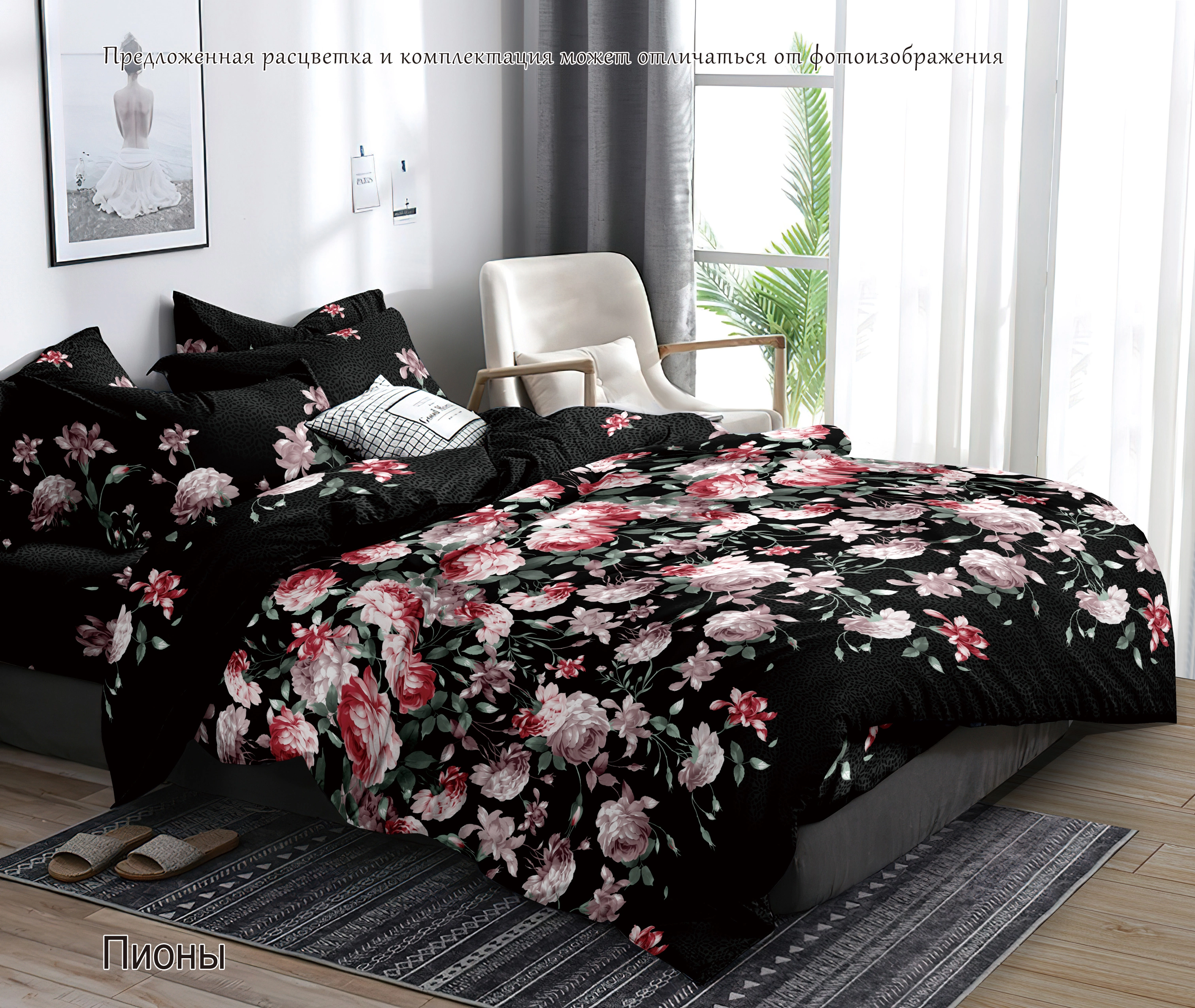 Преобразите интерьер своей спальни с изысканным комплектом постельного белья «Павлайн». Глубокий черный фон в сочетании с роскошным цветочным принтом «Пионы» создает атмосферу благородства и стиля. Этот комплект станет центральным элементом декора, даря эстетическое наслаждение и настраивая на качественный отдых после долгого дня.