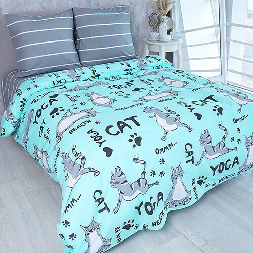 Постельное белье 'Йога кошки' превратит вашу спальню в место комфорта и позитива. Забавные коты в различных йогических позах подарят хорошее настроение каждый день.