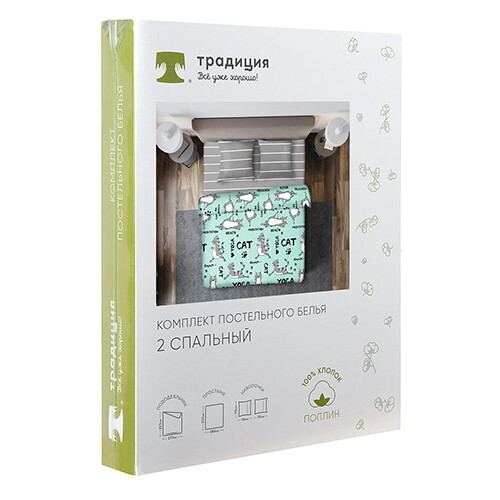Комплект постельного белья 2,0 поплин 'Йога кошки', 100% хлопок, голубой/серый