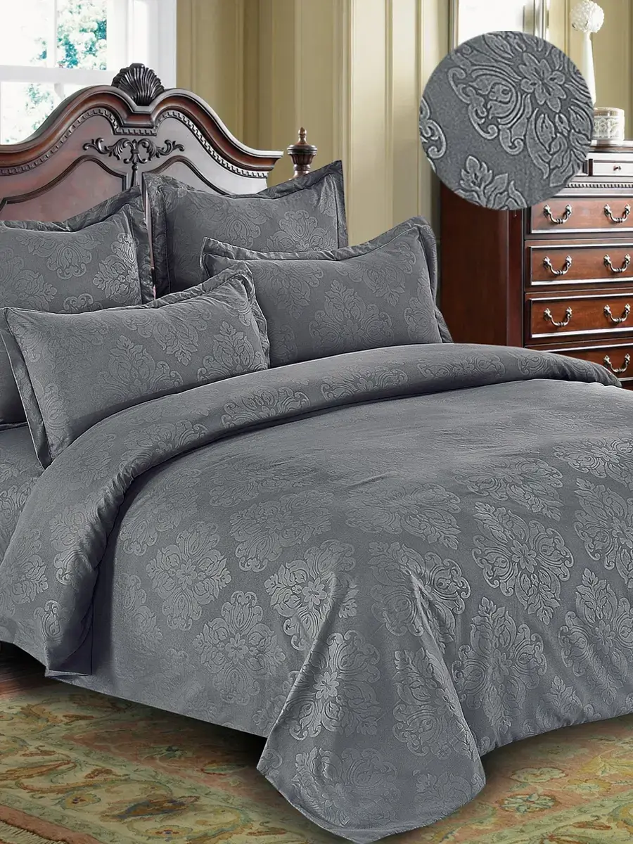 Постельное белье из коллекции "Laura" создает атмосферу роскоши и уюта благодаря сочетанию мягкого полисатина и благородного жаккарда. Серый цвет с изысканным цветочным узором идеально впишется в любой интерьер.