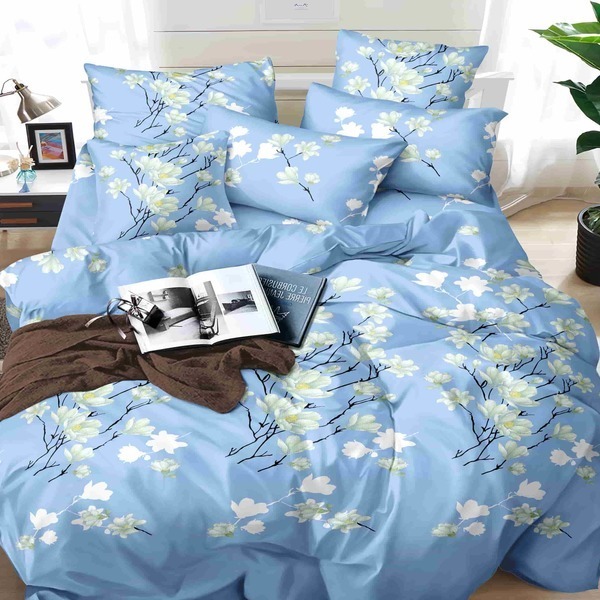 Комплект включает в себя пододеяльник, простыню и наволочки, которые имеют прямоугольную форму с ровными краями. Размеры изделий идеально подходят для евро-матрасов, а цветочный принт добавляет декоративный элемент в ваш интерьер. Постельное белье легко комбинируется с другими текстильными изделиями, что позволяет создать гармоничный и стильный образ вашей спальни.