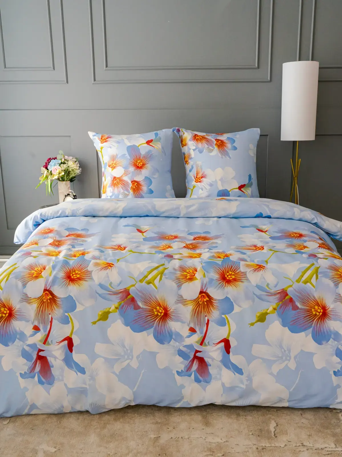 Набор из полисатина с гармоничным сочетанием практичности и эстетики создаст атмосферу комфорта в вашем доме. Яркий синий фон с контрастными цветами добавит свежести в интерьер, а мягкая ткань подарит приятные тактильные ощущения.