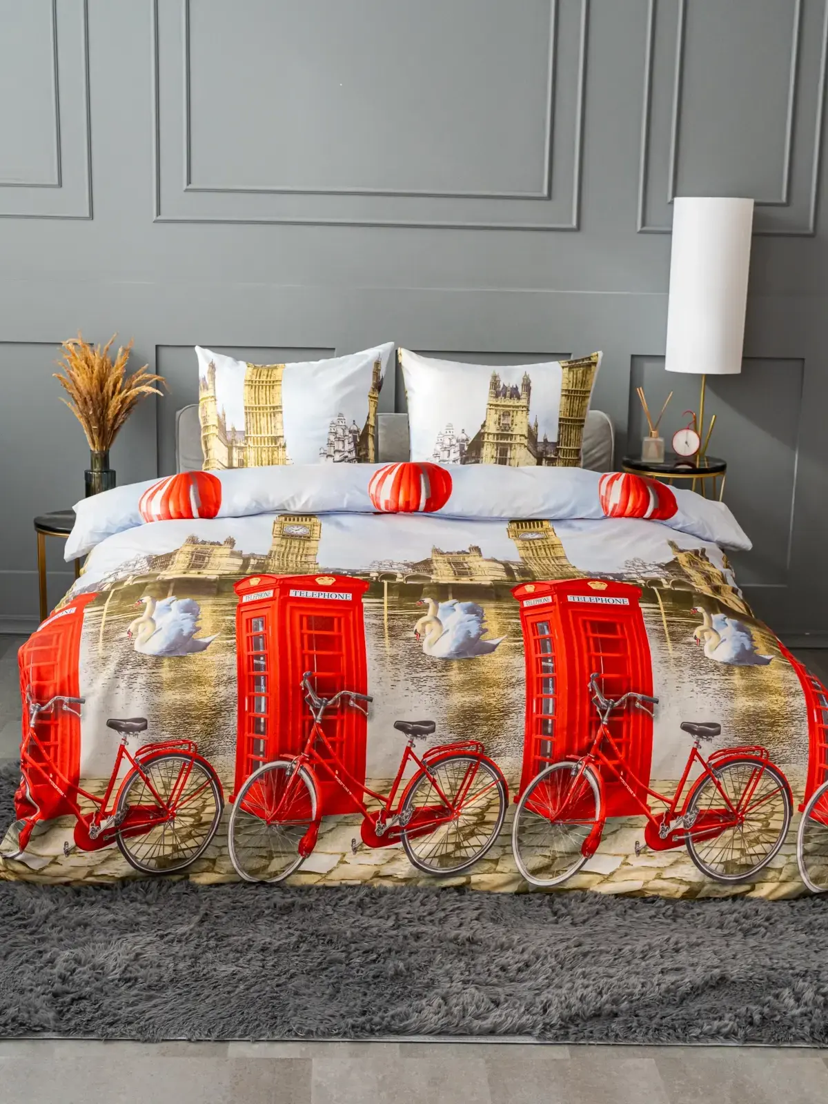 Погрузитесь в уют и стиль с постельным бельем 'Лондон' из коллекции Павлайн. Яркий принт с красными телефонными будками и велосипедами перенесет вас в сердце британской столицы.