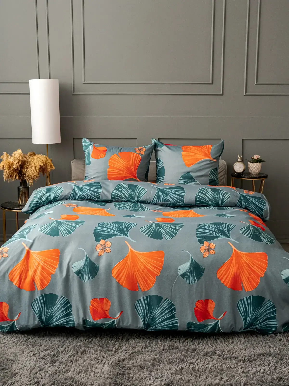 Полисатиновая ткань особого плетения обеспечивает идеальную циркуляцию воздуха и оптимальную терморегуляцию. Комплект евро-размера подходит для стандартных подушек и объёмных одеял. Голубовато-серый фон с контрастными оранжево-зелёными элементами создаёт гармоничный цветовой баланс.