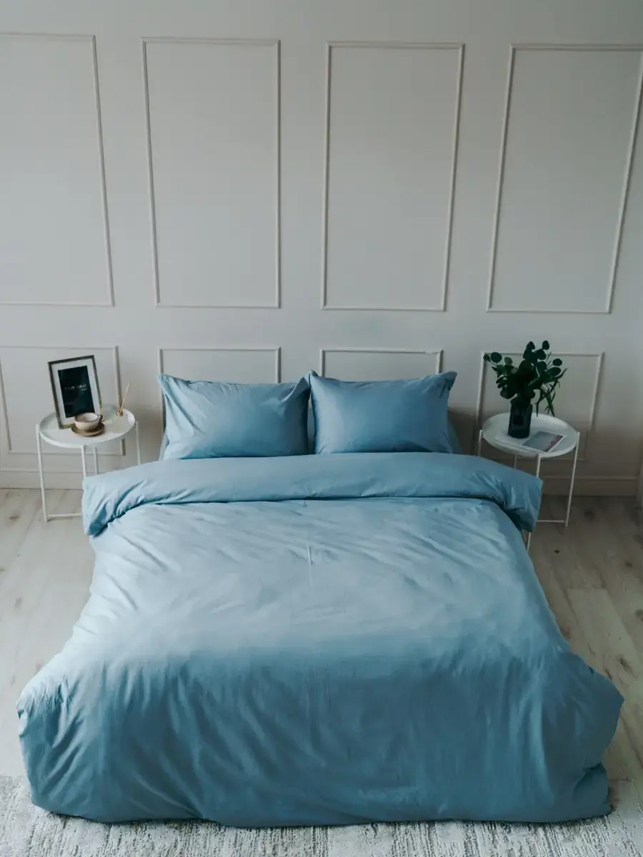Постельное белье Евро поплин IDEASON 3 предмета серо-голубой, комфорт и мягкость