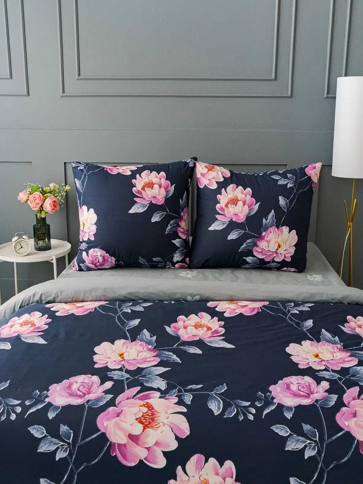 Постельное белье Евро поплин 'Sweet Sleep Романс', темно-синий с цветами, мягкость и износостойкость