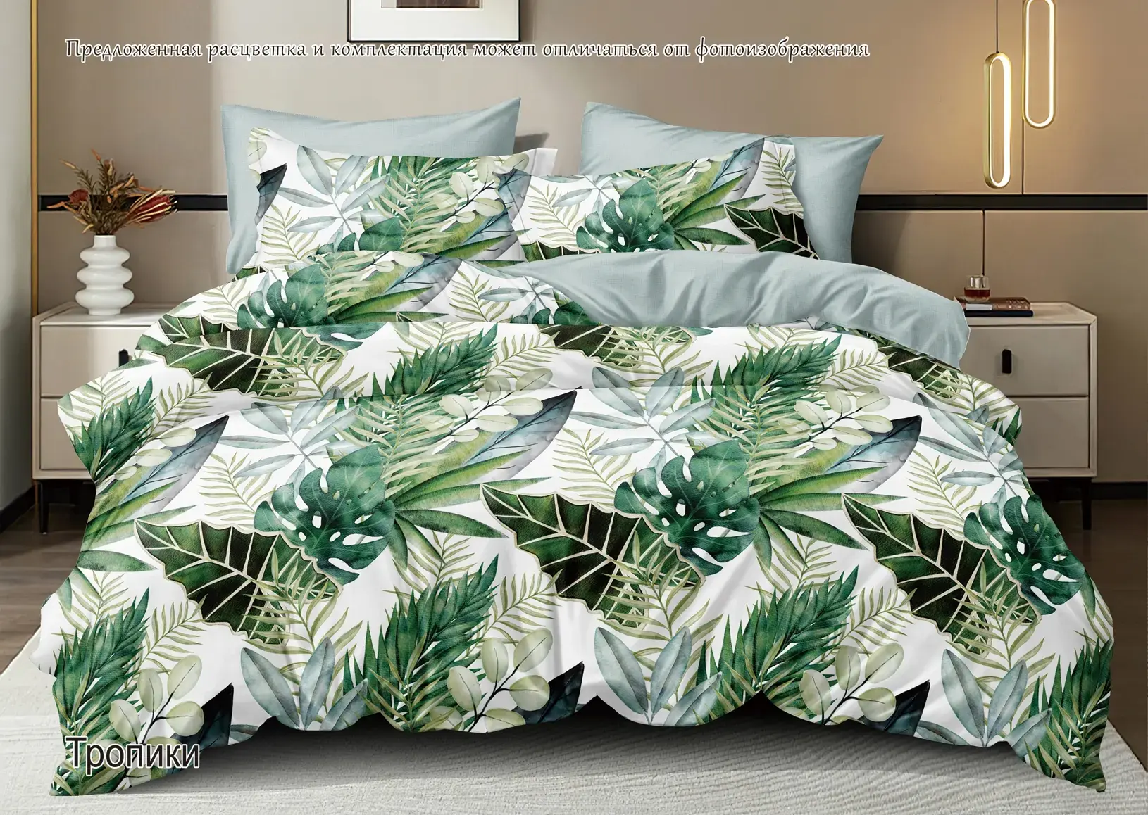 Постельное белье Евро поплин 'Sweet Sleep' с тропическим принтом — это идеальный выбор для создания уютной атмосферы в вашей спальне. Благодаря высококачественному материалу из поплина, вы сможете наслаждаться комфортом и мягкостью каждую ночь. Эстетичный дизайн с изображением тропических листьев добавит свежести и яркости в ваш интерьер.