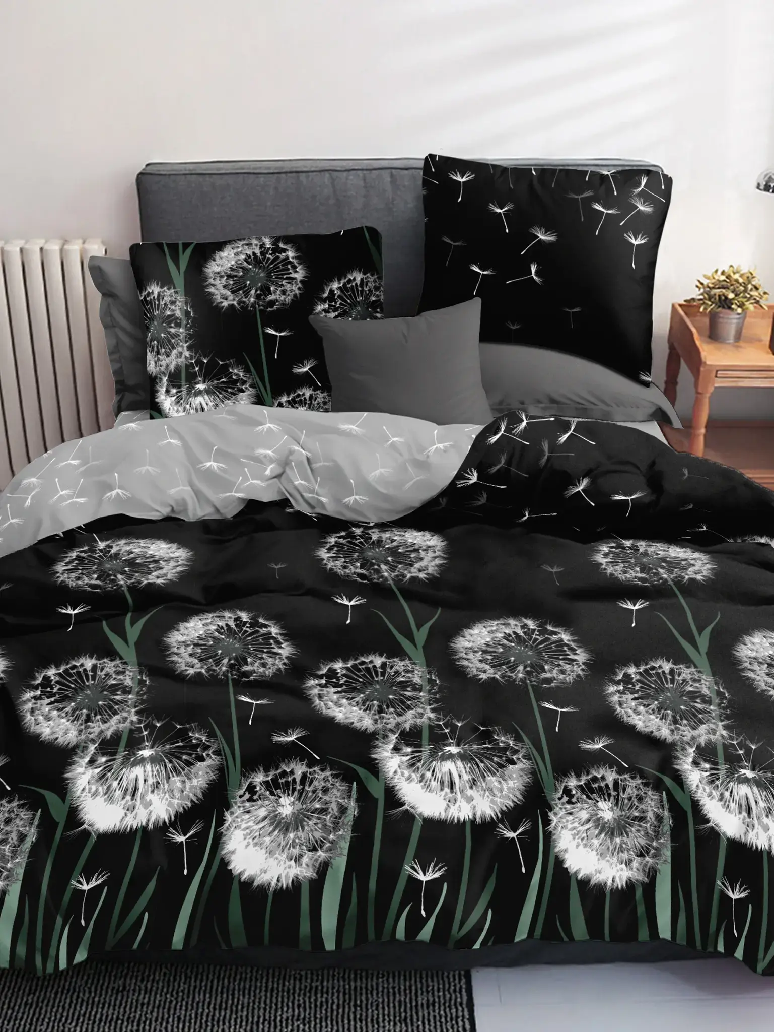 Создайте атмосферу уюта и комфорта в вашей спальне с постельным бельем из поплина с уникальным узором одуванчиков. Это белье не только красиво, но и практично, обеспечивая вам качественный сон и отдых. Основной цвет — черный, который отлично сочетается с белыми и серыми элементами узора, добавляя изысканности вашему интерьеру.