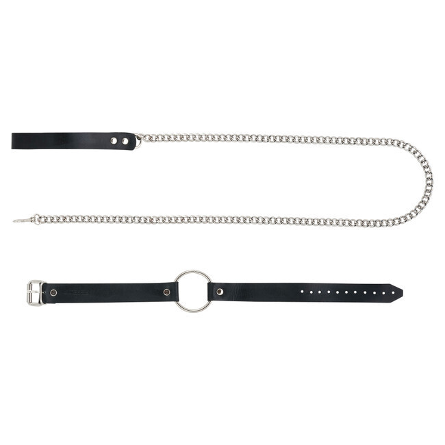 Металлический поводок с кожаной ручкой и чокер с кольцом