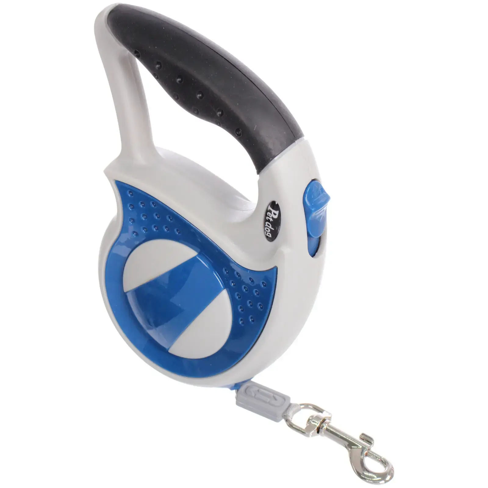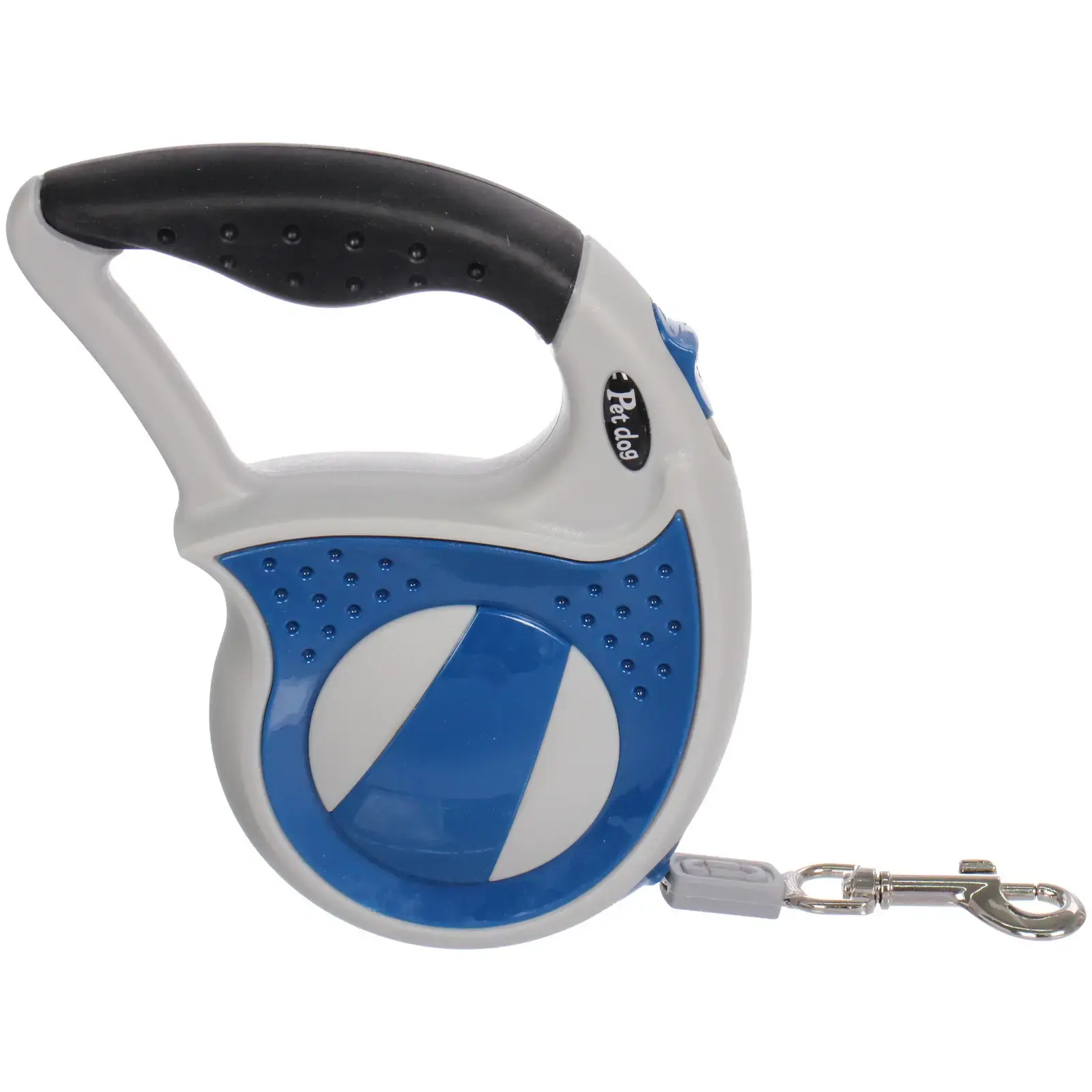 Корпус поводка выполнен из ударопрочного АВС пластика, что делает его устойчивым к механическим повреждениям. Ручка с прорезиненной поверхностью предотвращает скольжение, а кнопка для фиксации поводка расположена удобно для быстрого доступа. Размеры поводка составляют 3 метра, что позволяет вашему питомцу свободно передвигаться, не теряя контроля.