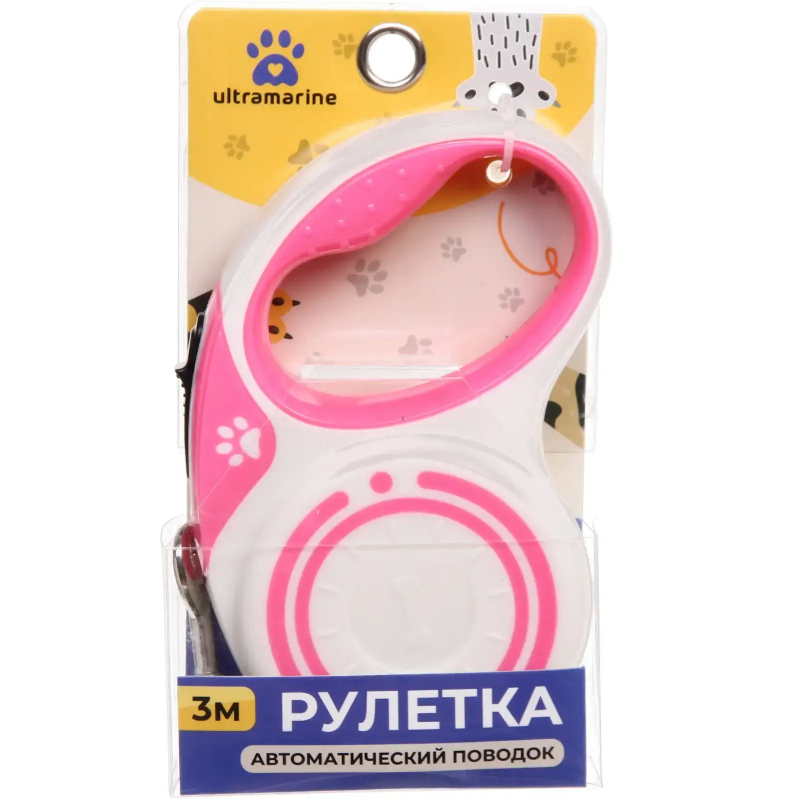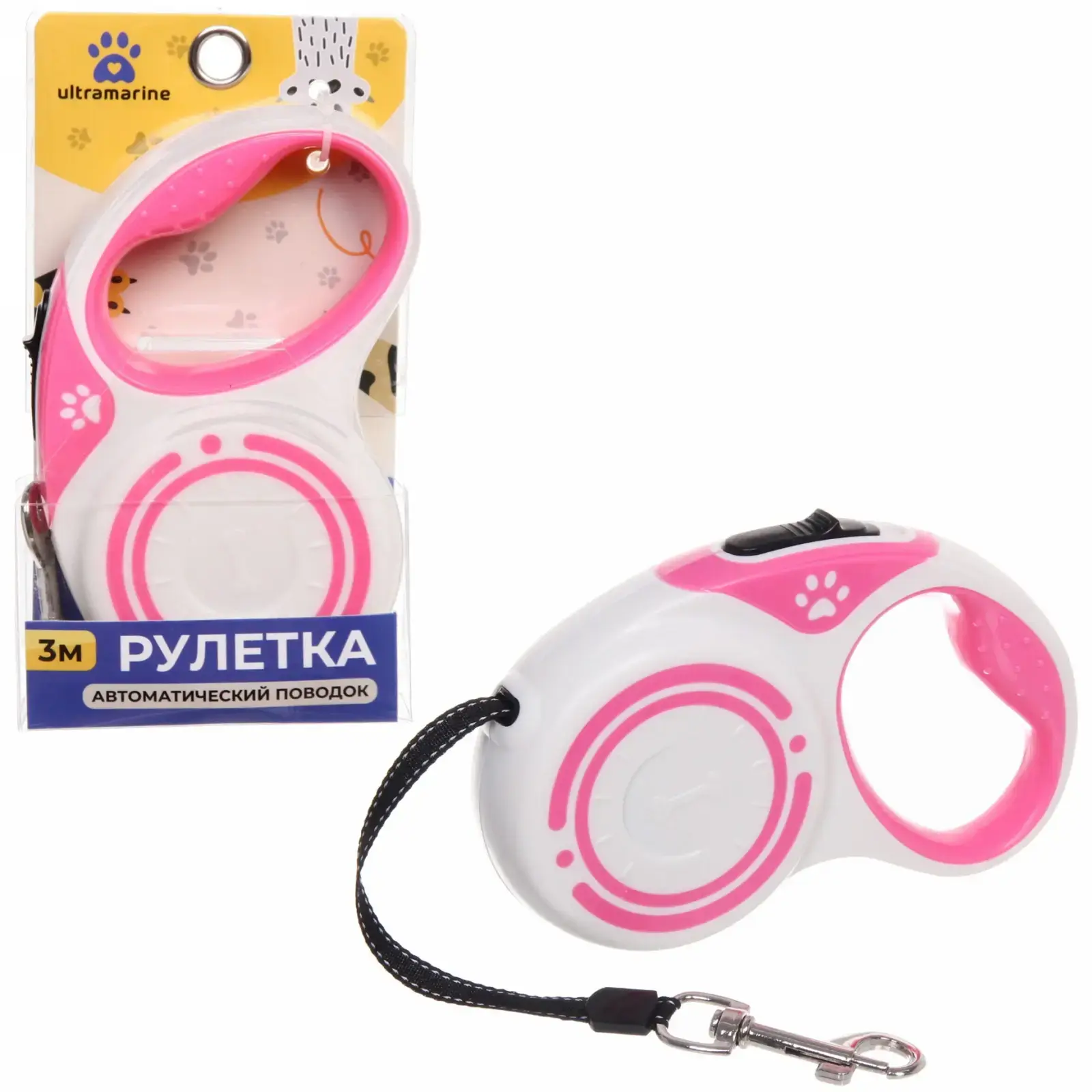 Поводок-рулетка 'ЛАППИ' для малых пород, белый/розовый, 3м, до 10кг