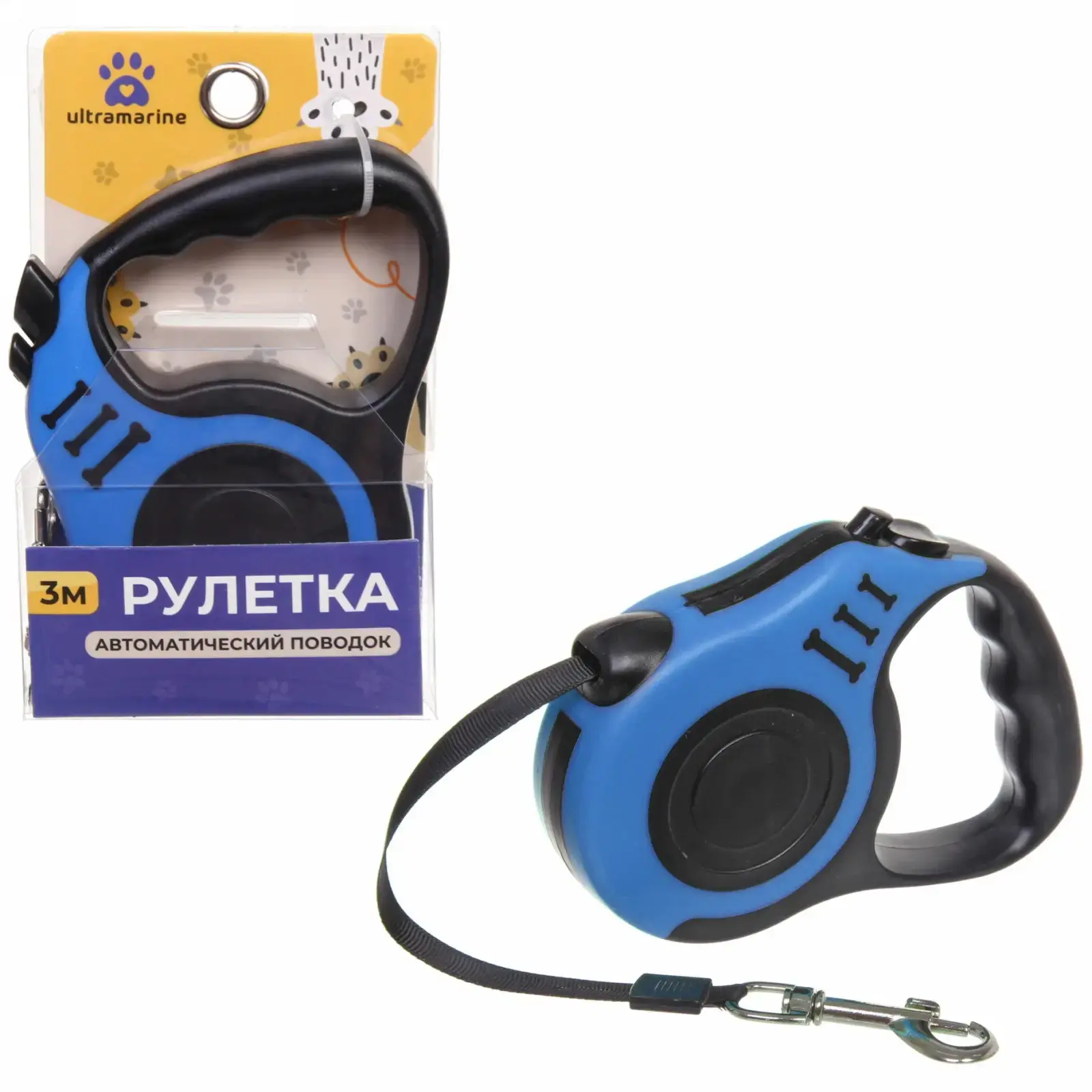 Поводок выполнен из прочного нейлона и металла, что обеспечивает надежность и долговечность. Его длина составляет 3 метра, что позволяет вашему питомцу свободно передвигаться, не теряя при этом контроля. Цвет голубой с черными элементами делает поводок стильным и привлекательным.