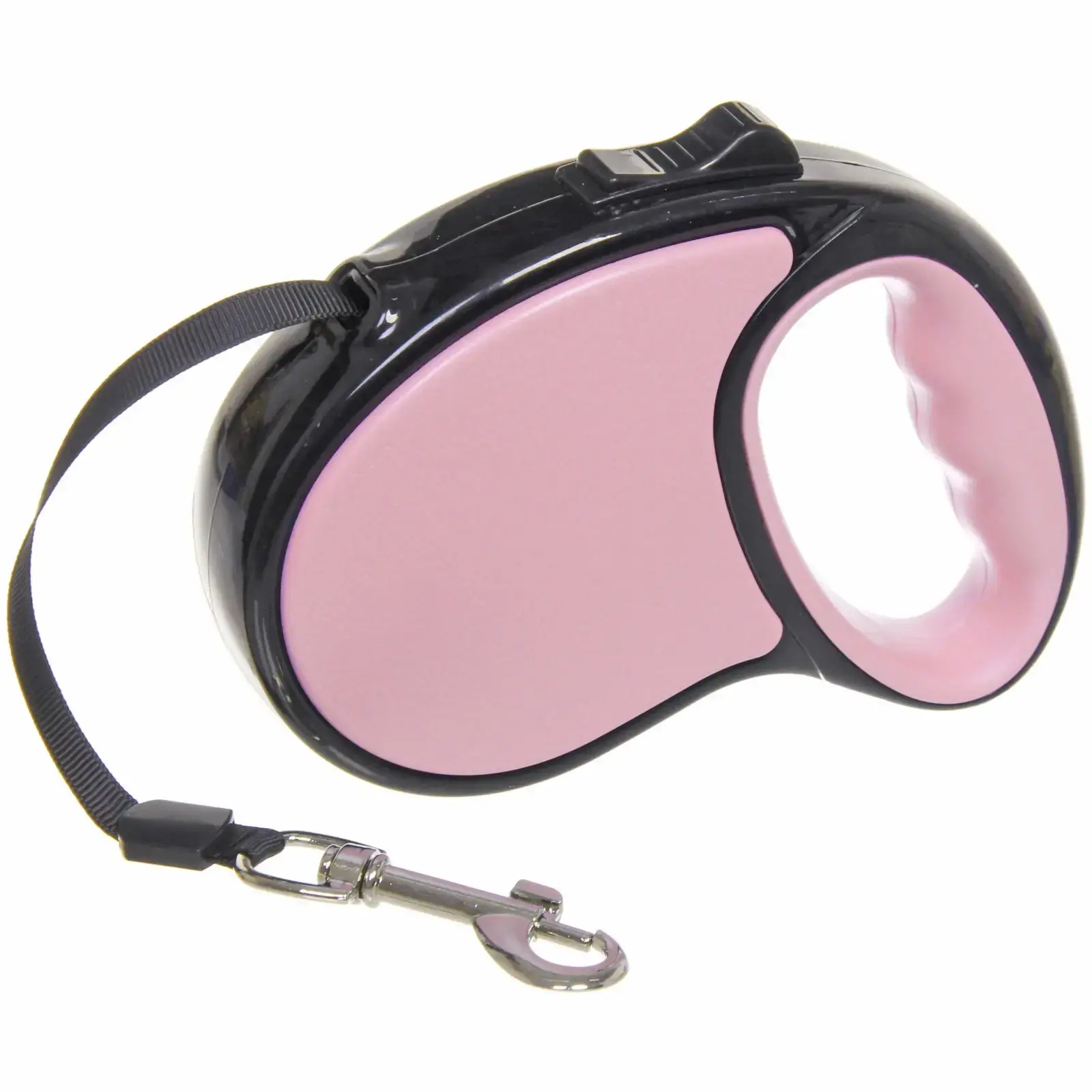 Поводок выполнен из износостойких материалов: армированный нейлон (лента), ударопрочный пластик (корпус), сталь (карабин). Длина 3 метра оптимальна для свободного перемещения собаки. Розовый цвет корпуса сочетается с классическими аксессуарами для питомцев.