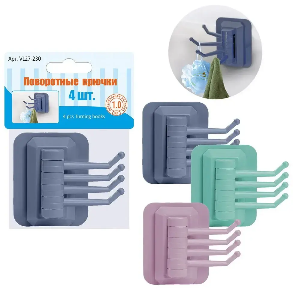 Поворотные крючки 'VL27-230', 4 шт, пластик, серый/зеленый/розовый/голубой, до 1 кг