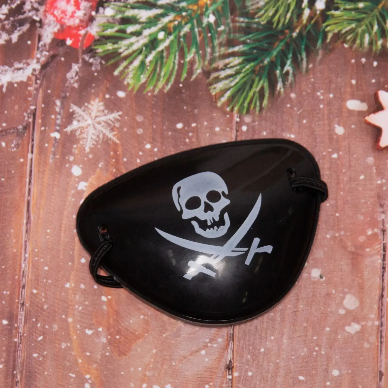 Повязка на глаз 'Пират белый череп', 1 штука, пластик, черная с белым рисунком
