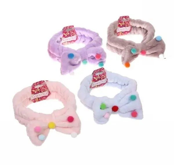 Почему стоит выбрать именно эту повязку? Во-первых, она выполнена из качественного текстиля, что обеспечивает долговечность и комфорт при ношении. Во-вторых, разнообразие цветов — голубой, сиреневый, бежевый и розовый — позволяет выбрать именно тот оттенок, который подойдет к вашему стилю. В-третьих, оригинальный дизайн с бантом и помпонами добавляет игривости и яркости вашему образу.
