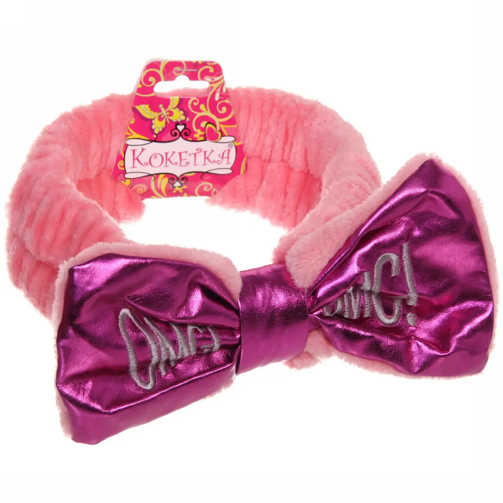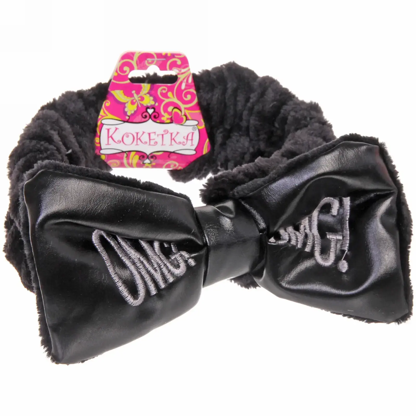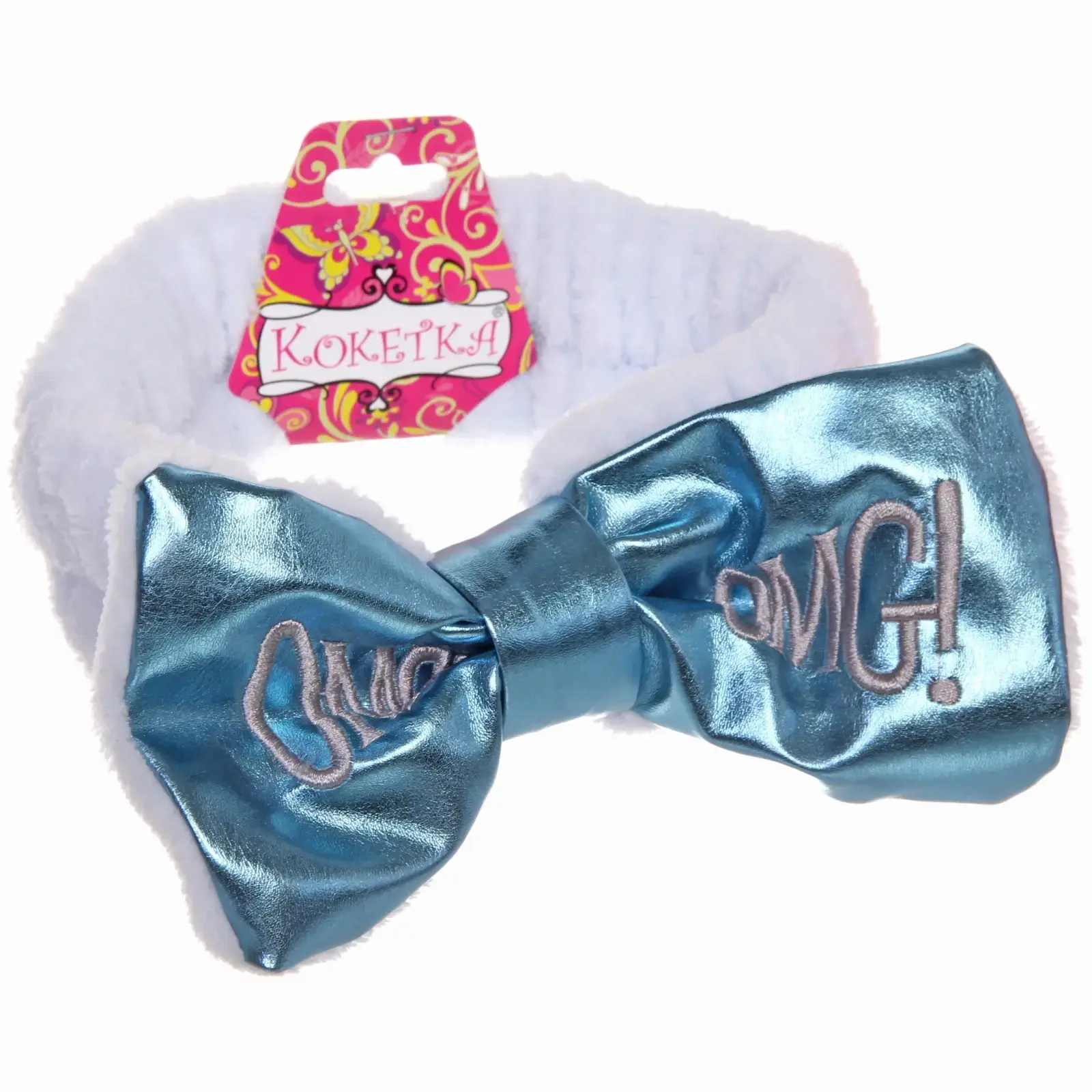 Повязка представлена в четырех модных оттенках: классический черный, нежно-розовый, спокойный бежевый и свежий голубой. Каждая модель украшена крупным бантом с фирменной надписью 'OMG!', создающей игривое настроение.