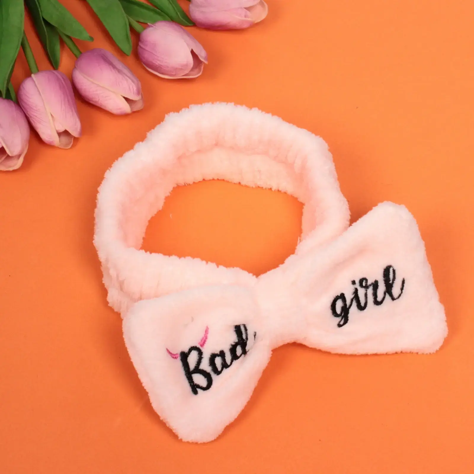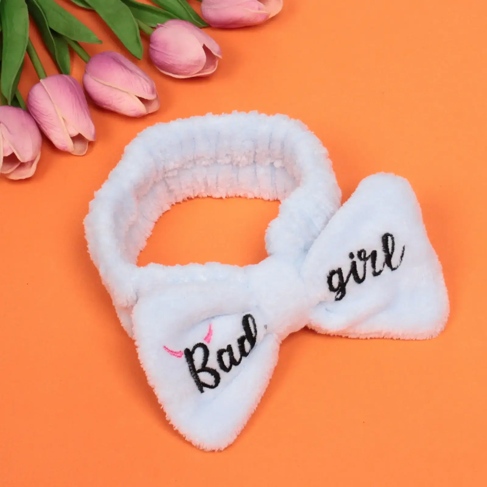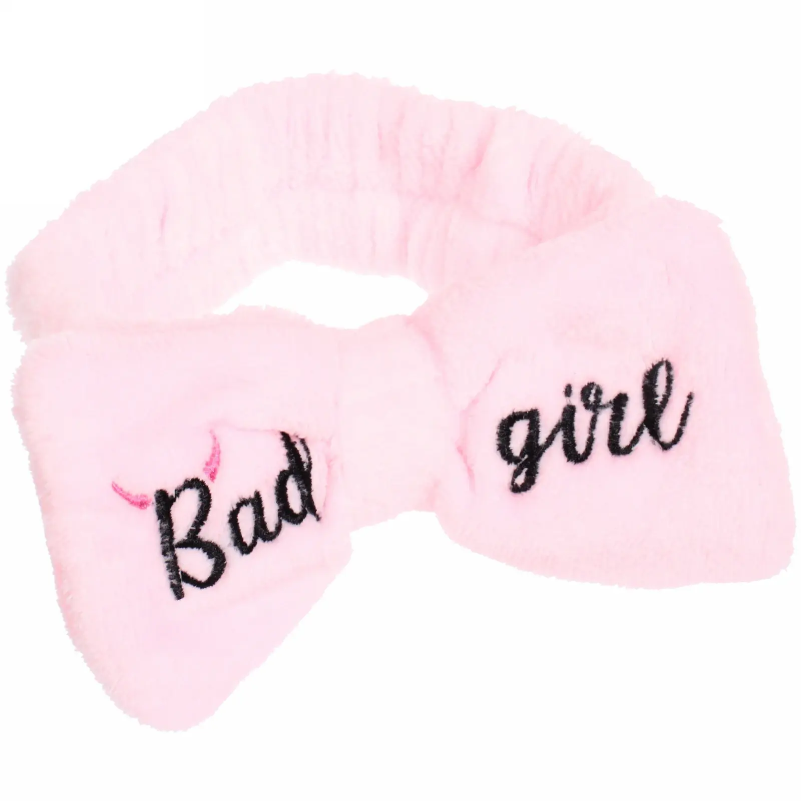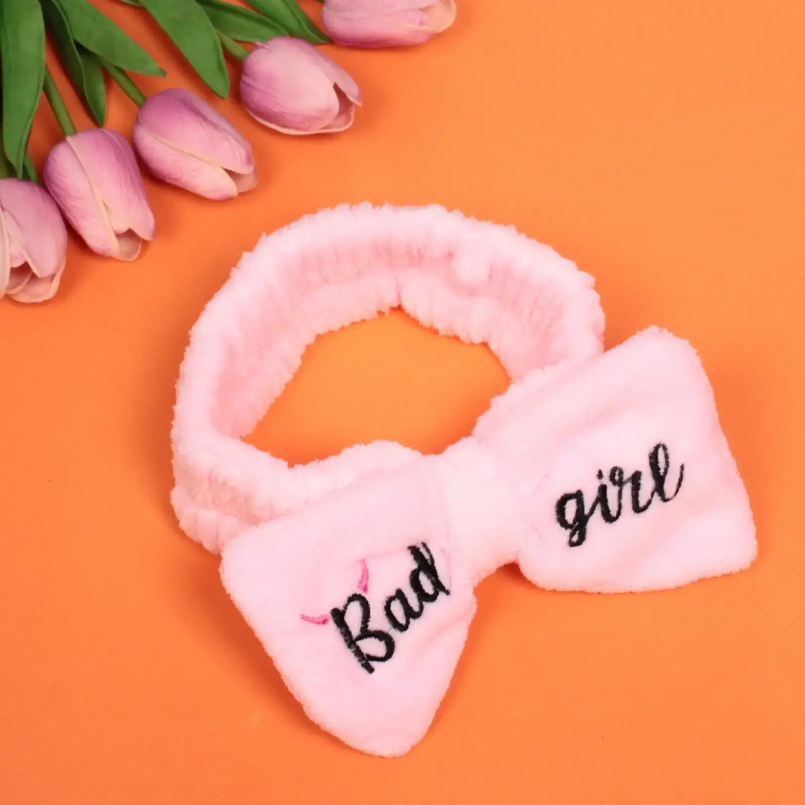 Эта повязка выделяется не только своим дизайном, но и качеством материалов. Мягкий текстиль обеспечивает комфорт и не вызывает дискомфорта при длительном ношении. Декоративный бант с вышитыми надписями 'Bad' и 'girl' добавляет игривости и стиля, делая повязку универсальным аксессуаром для любого случая.