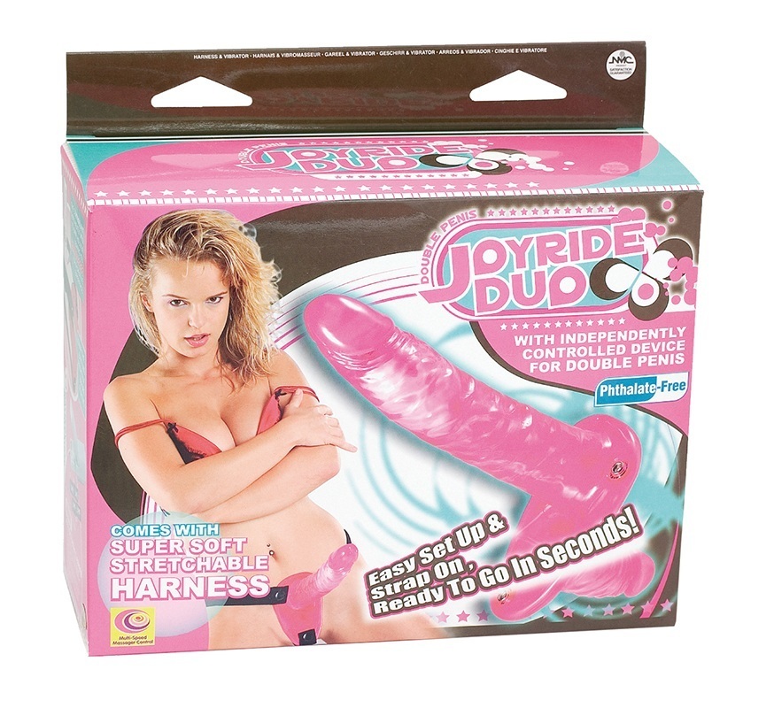 Страпон розовый 'Joyride Duo' с вибрацией, длина 17.5см/9см, ПВХ