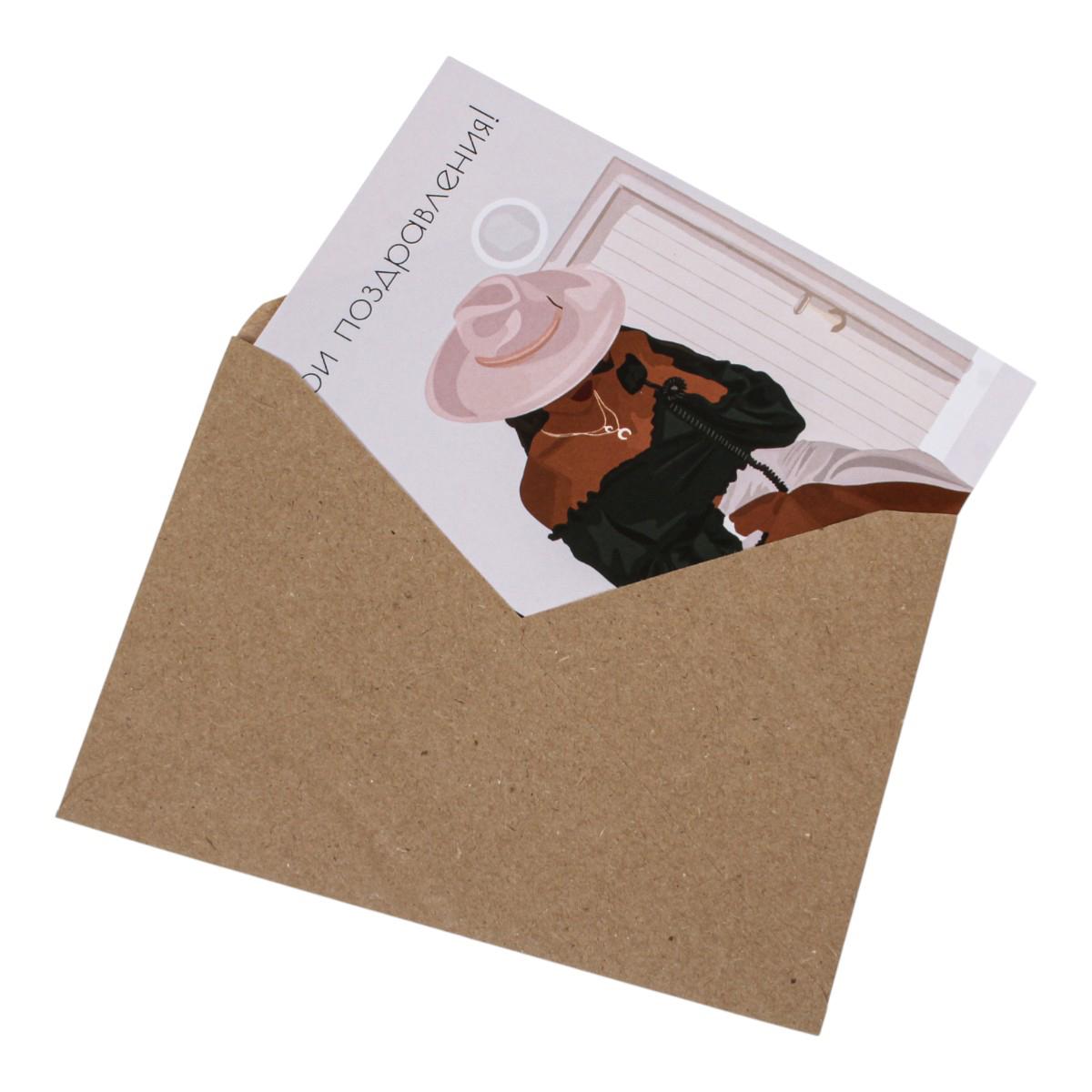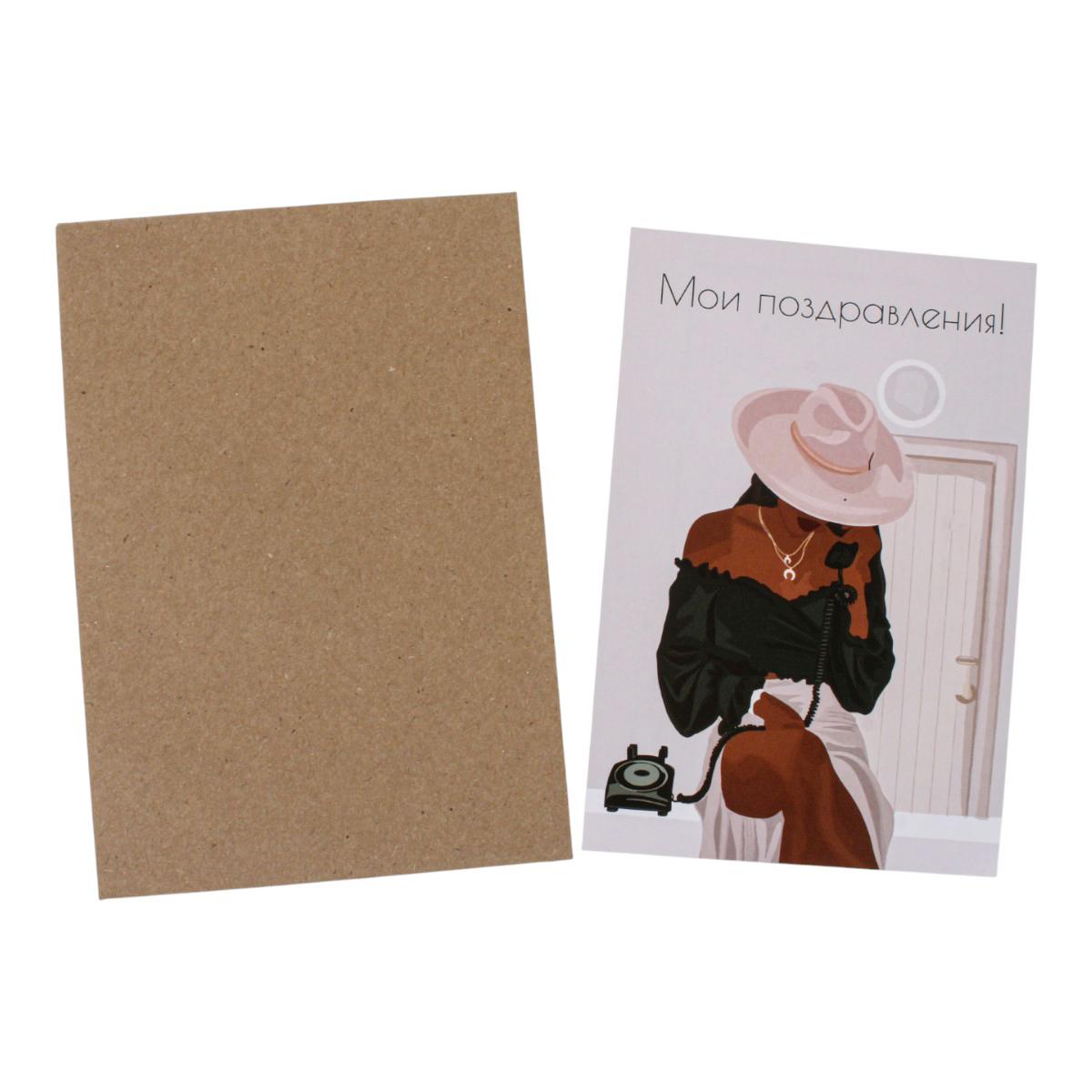 Эта изысканная открытка «Мои поздравления!» выполнена из дизайнерской бумаги 350 г/м², что обеспечивает долговечность и презентабельный вид. Комплект включает прочный конверт из крафтовой бумаги, аккуратный пакет с клеевой лентой для удобства упаковки и саму открытку с яркой иллюстрацией и текстом «Мои поздравления!».